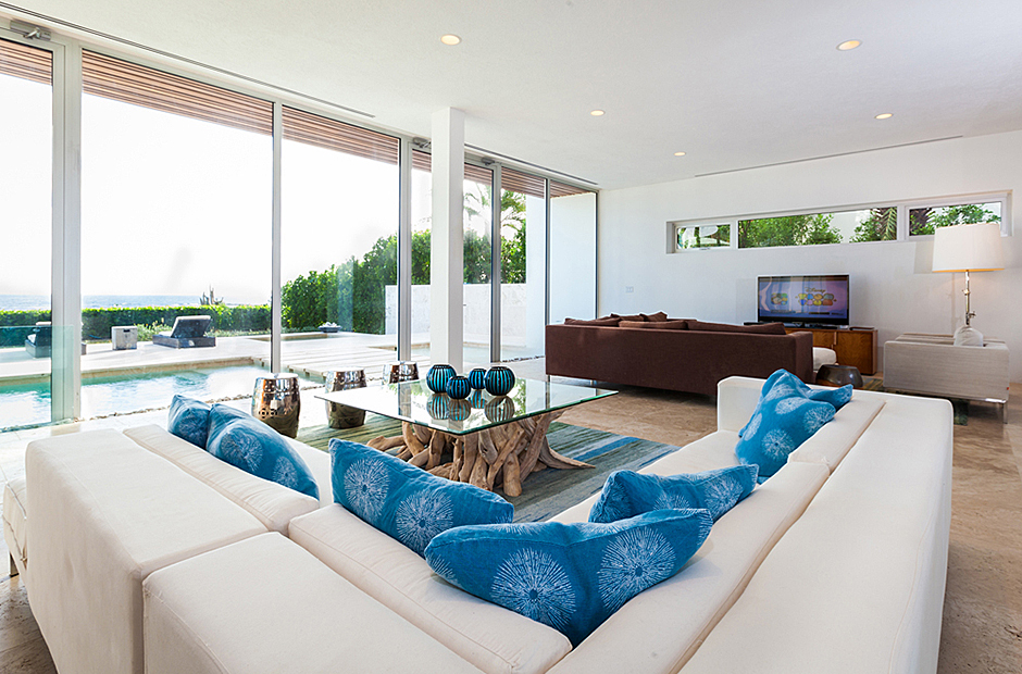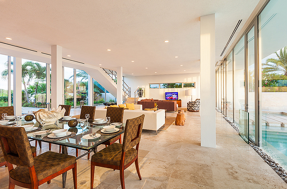 These stylish island escapes provide a revitalizing, sensory experience of sun, sand and sea. Almost identical in layout, but with slight design nuances that make them still one-of-a-kind, the spacious modern homes use floor-to-ceiling glass windows and doors to bring the stunning azure water views and lush gardens indoors.