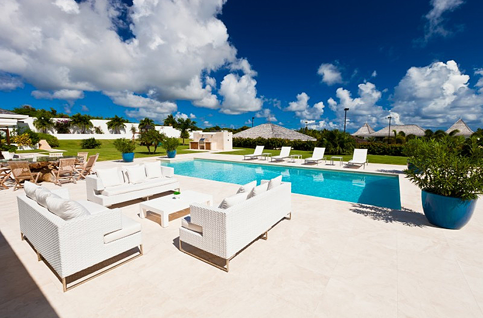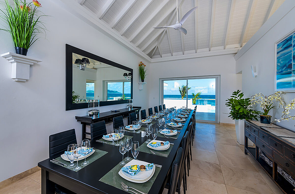 A truly incredible private estate located on the quiet waters of Little Harbour on the island of Anguilla. Consisting of eleven suites, the villa has two private swimming pools, a tennis court and pavilion, gym, cinema room, and a private beach with ocean access and is set in 2.5 acres of beautiful tropical gardens. It is the ultimate in luxury and privacy. Included in the villa are a team of professional staff; chefs offering five star cuisine, an estate and front of house manager, butler, housekeepers, security, and grounds keepers to help make guest’s stay comfortable and relaxing. The pool and surrounding area are used for breakfast, evening cocktails, and dinner.