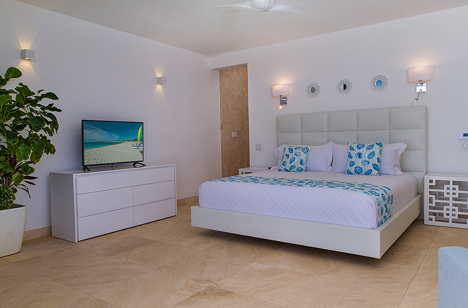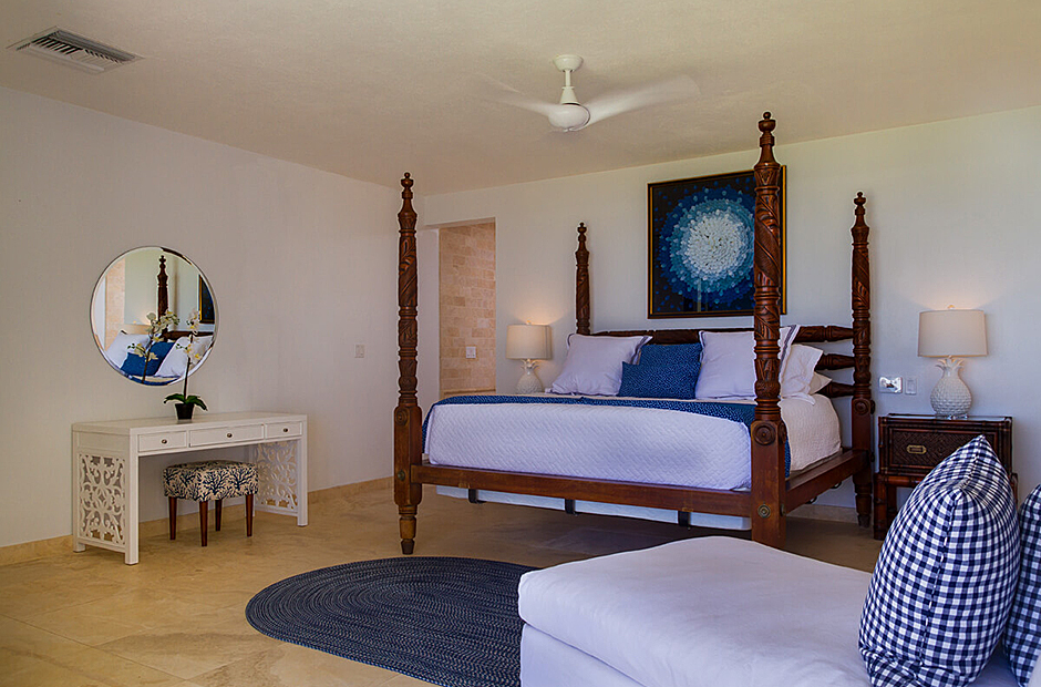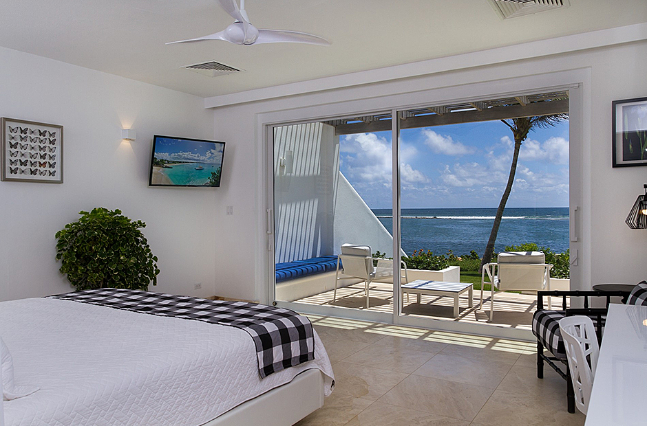 Seven suites each have a king-size bed, en-suite bathroom with shower and stone bath, hairdryer, toiletries, and air-conditioning. All rooms have magnificent ocean views and direct access to the garden and sea. One suite has a queen-size bed, en-suite bathroom, hairdryer, toiletries, air-conditioning and is overlooking the water and garden. One suite has two twin beds (which can be combined to make king-size bed), en-suite bathroom, hairdryer, toiletries, private terrace, air-conditioning, and is overlooking the water and garden.