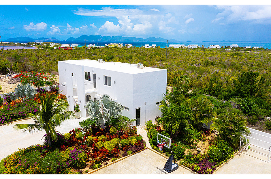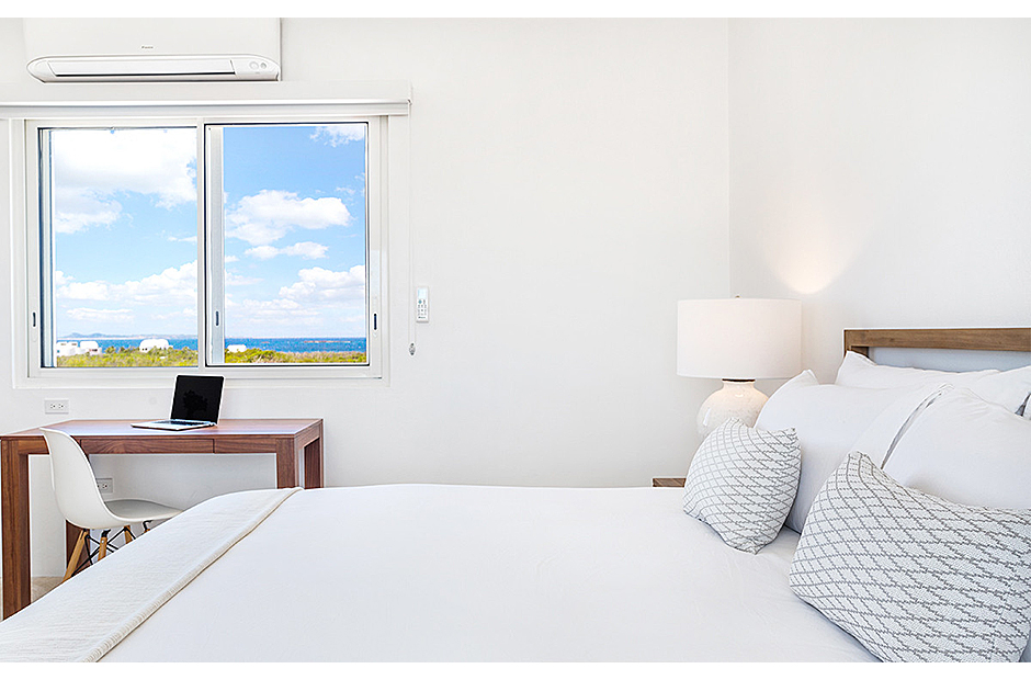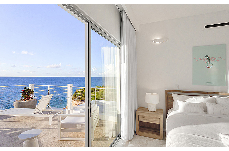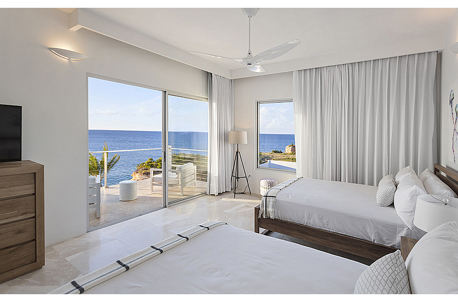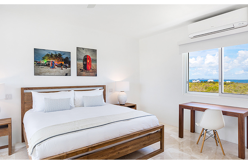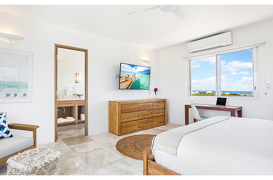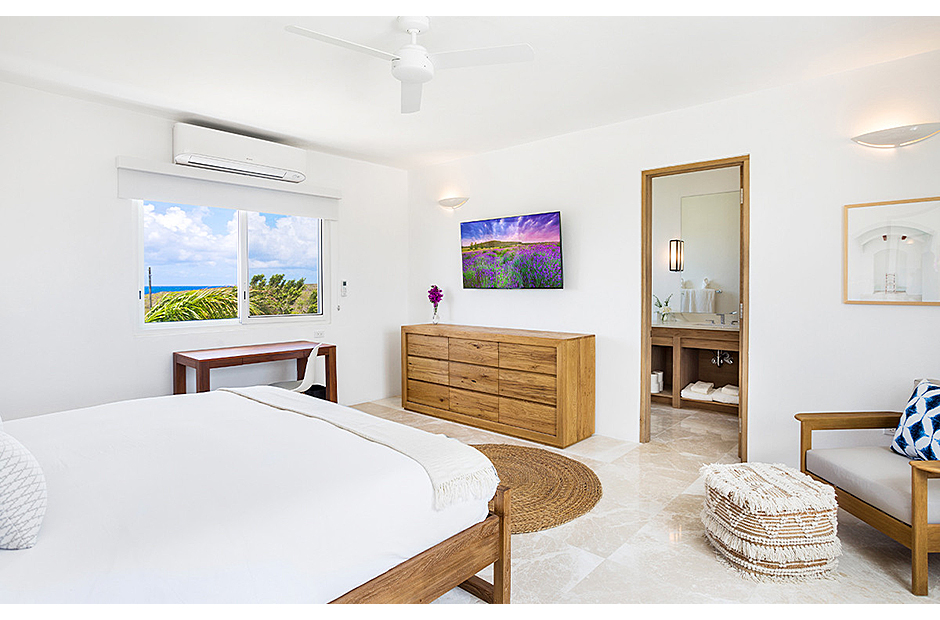 The villa offers breathtaking views of the neighboring island of St. Martin, making the most of its enviable location on the West End of Anguilla. Each room within the house is thoughtfully designed to capture and highlight these sweeping vistas, adding to the villa's charm and allure.