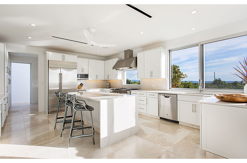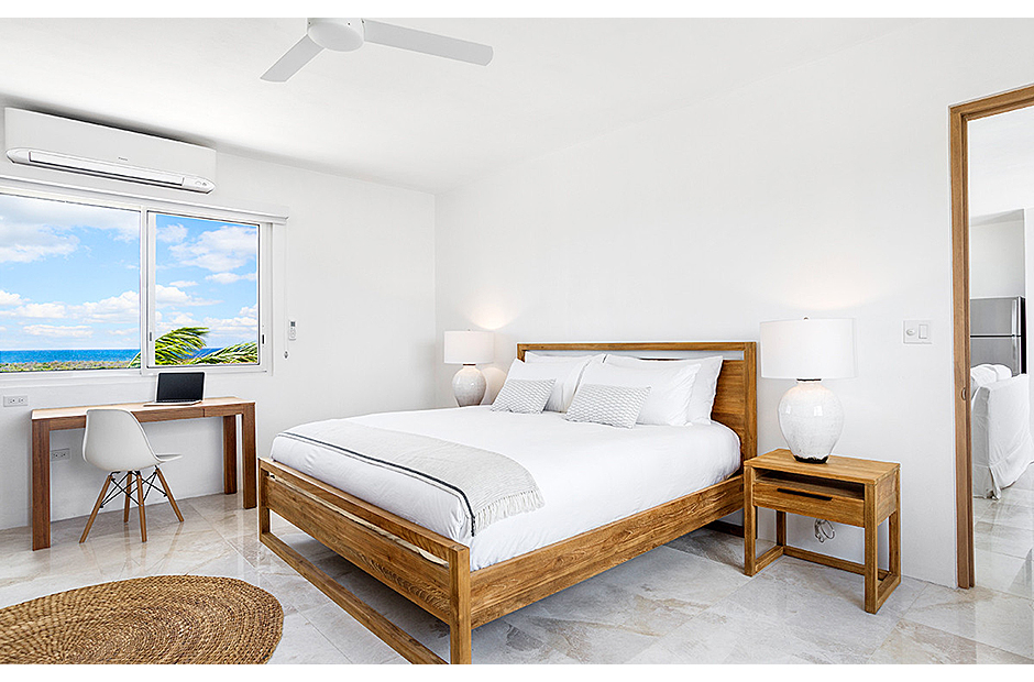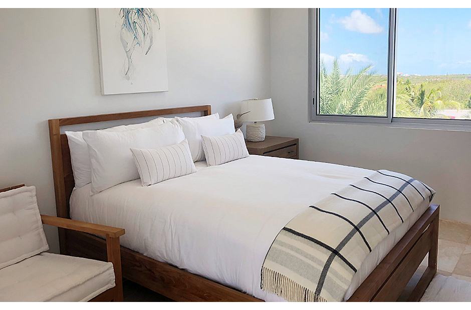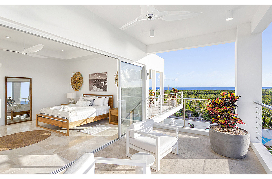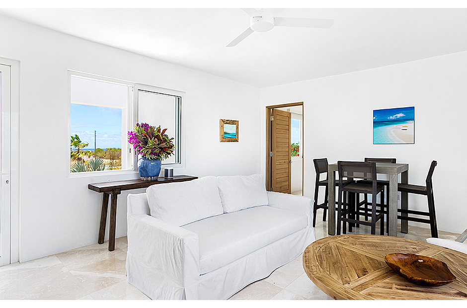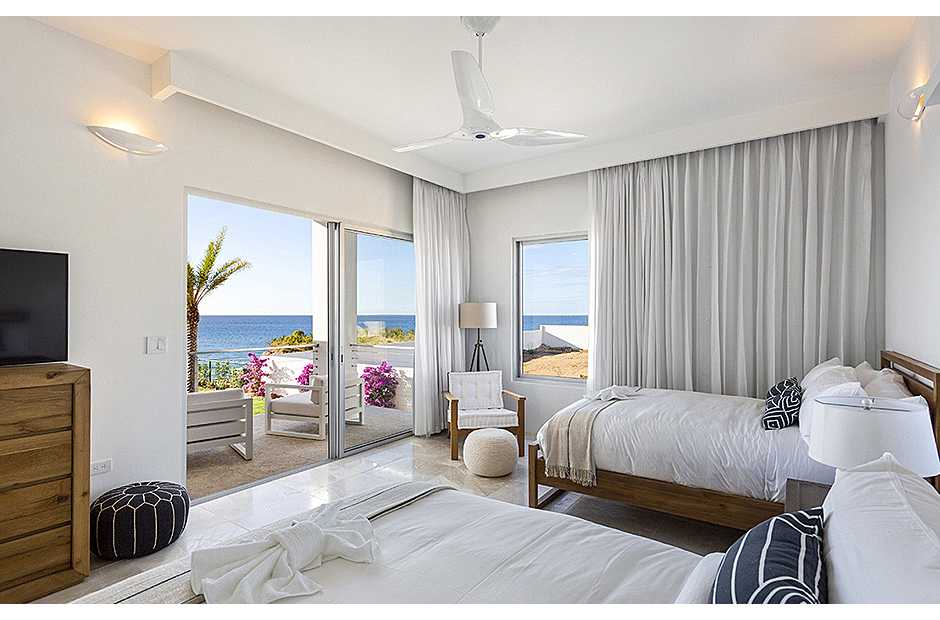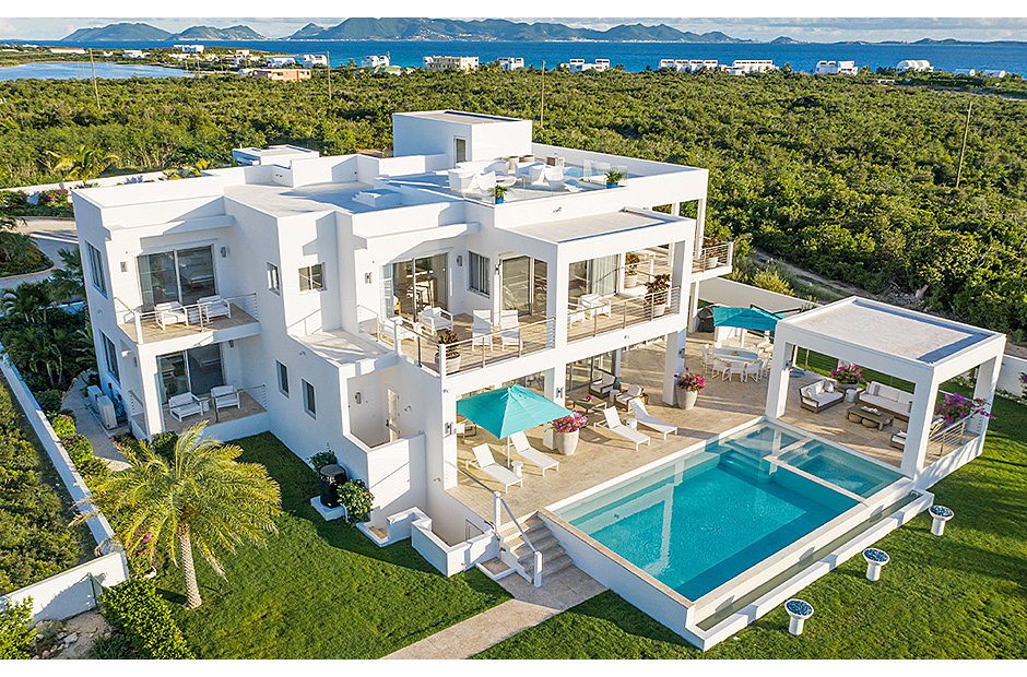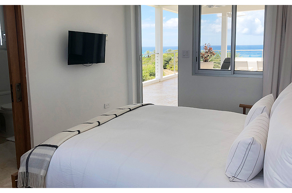 The villa offers breathtaking views of the neighboring island of St. Martin, making the most of its enviable location on the West End of Anguilla. Each room within the house is thoughtfully designed to capture and highlight these sweeping vistas, adding to the villa's charm and allure.
