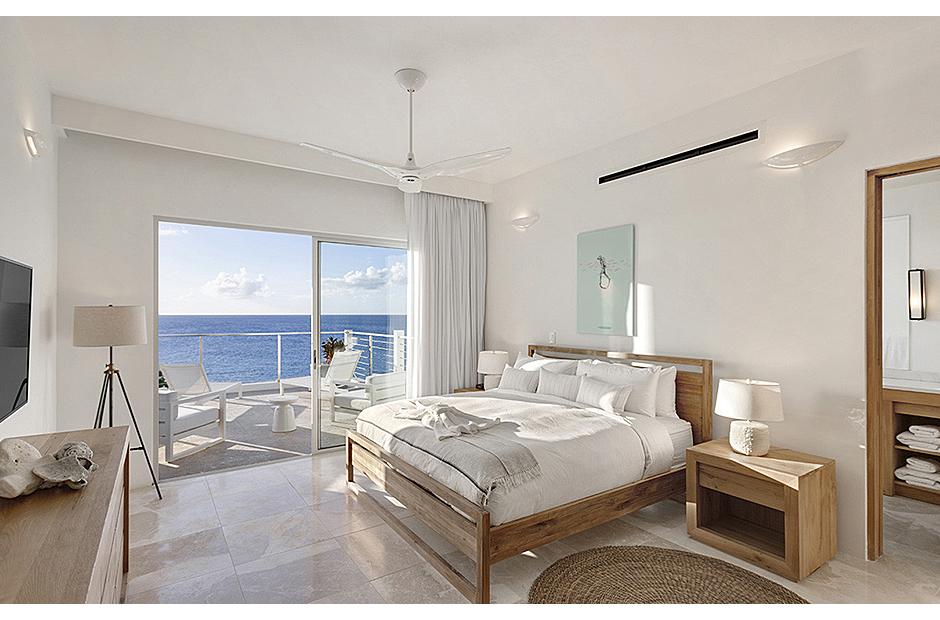 Open the expansive floor-to-ceiling doors to let the invigorating sea breeze transport you to a state of absolute relaxation. This architectural masterpiece is designed to dissolve the boundary between indoor comfort and outdoor splendor. With a plethora of balconies, a sprawling pool deck furnished with shaded living areas, and an outdoor living room majestically perched cliffside over the sea, this villa promises an immersive and idyllic island experience.