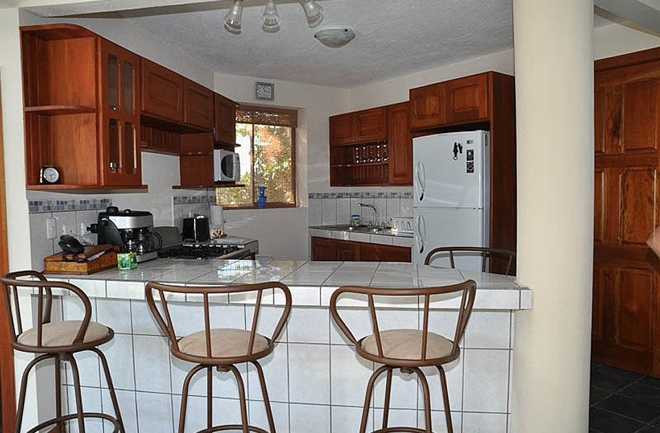 This modern style home is a wonderful complement to the beautiful tropical setting. Set in the small village of El Castillo, this home features three bedrooms, 2 and 1/2 baths plus a living room/dining room/kitchen area off of a wrap around terrace. The three bedrooms are located on the upper level. The master bedroom has a full bathroom with a shower. The other two bedrooms have a bathroom centrally located next to the bedrooms for your convenience and the third bathroom is located on the lower level of the house next to the living room and kitchen. The washer and dryer are located on the lower level in a spacious laundry room. High quality, designer furnishings have been used throughout this home. They have been carefully selected to reflect the contemporary style while simultaneously creating a casual, comfortable atmosphere.