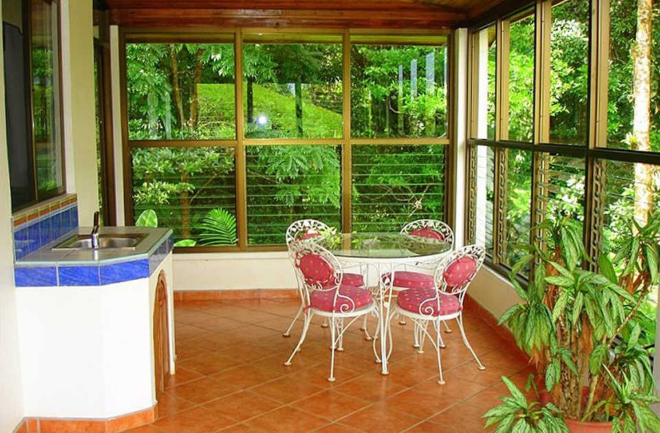 Our four separate homes each have a distinct personality. The main villa is the largest, featuring beautiful views of Lake Arenal and the surrounding jungle, and, in addition to the pool and the rancho, is the central gathering place for meals or simply hanging out. This villa features: a giant master bedroom with bath en-suite, a grand living room area of 55 feet in length and magnificent views of Lake Arenal, a large kitchen and dining area, and much more. The property has a large parking area and a covered two car garage. All of the villas are equipped for cooking (villas #3 and #4 have kitchenettes) and have a television with DVD players and movies available. Three of our four villas are wheelchair accessible.