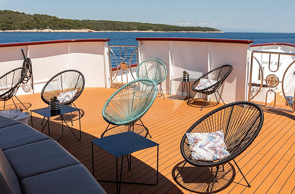 Key Features: Luxury cruise for 36 guests17 staterooms with en-suite bathrooms with multiple configurations165m2 of sunbathing space on the upper deck with a bar and a jacuzziInner and outer seating area for 36 guests!100% Croatian immersion thanks to the Croatian crew with years of valuable experience.