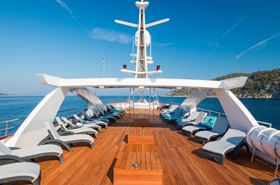 This cruise offers a small ship cruise experience with maximum accommodation for just 38 passengers to ensure a more personalized experience. There are 11 twin/double cabins and one single cabin on the main deck, and 8 cabins on the lower deck (as well as an extra single cabin for the cruise director), all with contemporary amenities. Meals are served in the spacious, air-conditioned dining area, and passengers can also enjoy relaxing with a drink in the lounge area, or out on the sundeck which includes loungers and a Jacuzzi.