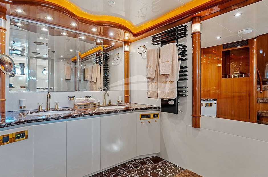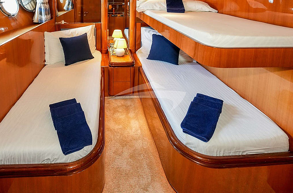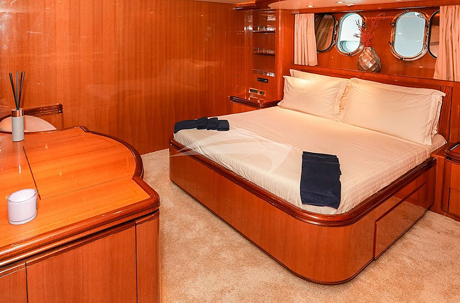 This yacht offers guest accommodation for up to 12 guests in 5 suites comprising a master suite, two VIP cabins and two twin cabins. She is also capable of carrying up to 5 crew onboard.