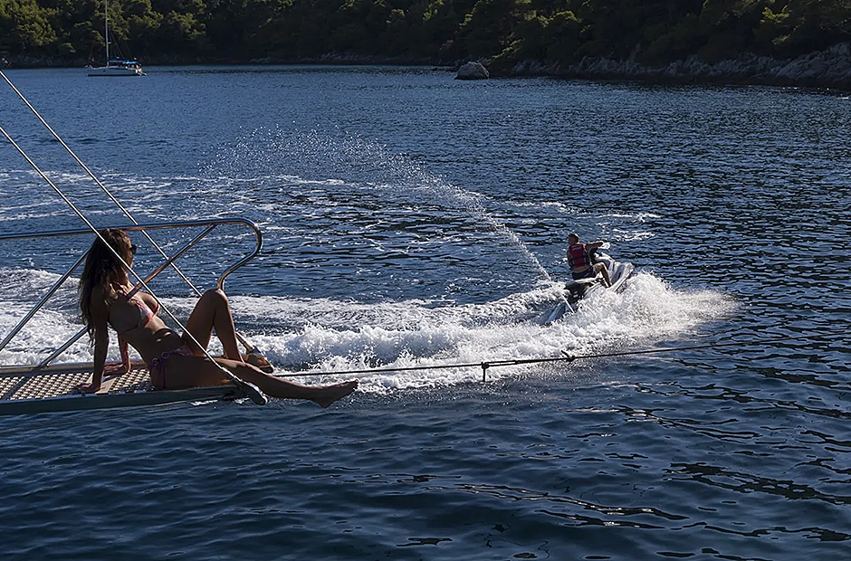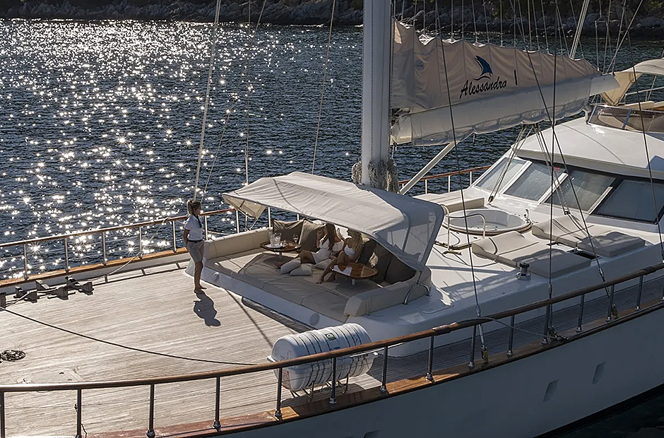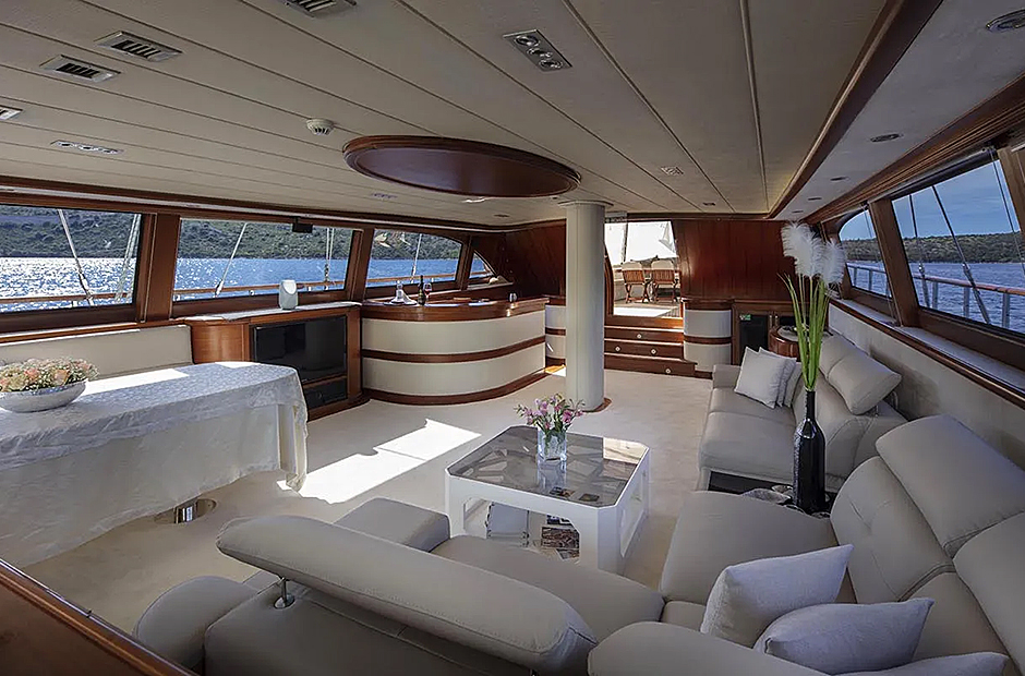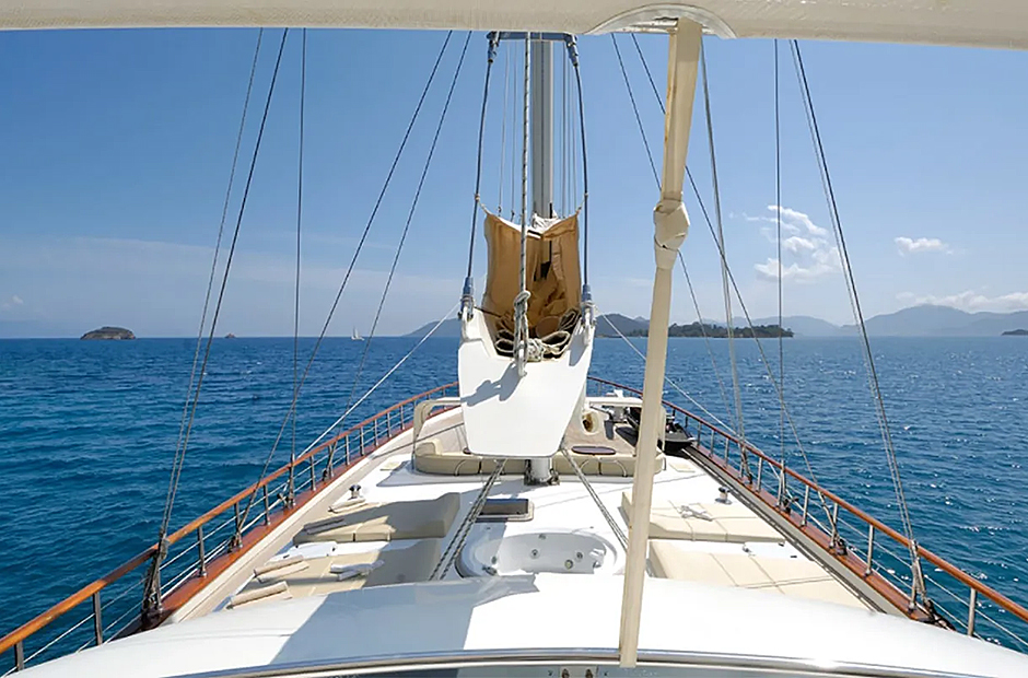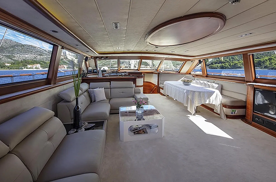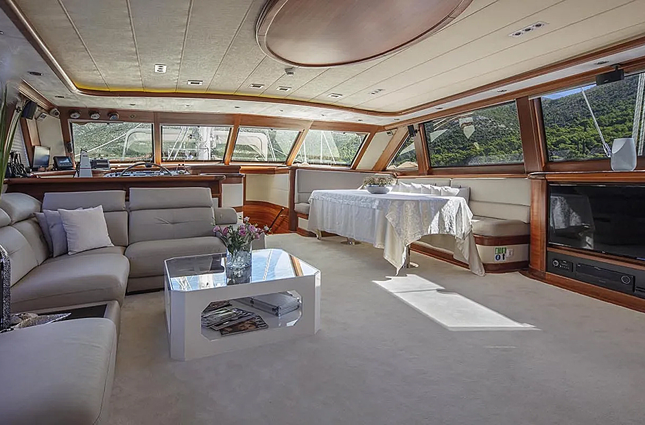 This yacht's beautifully appointed light and airy interior is the ideal location for stress free sailing holiday. Her saloon offers ample seating and relaxing areas leading to her 5 staterooms sleeping 10 guests in pampered luxury all situated on the lower deck.