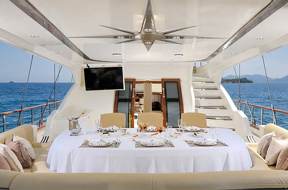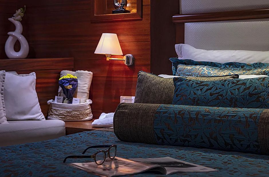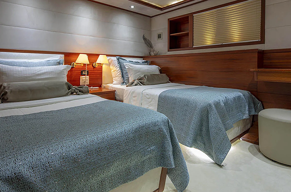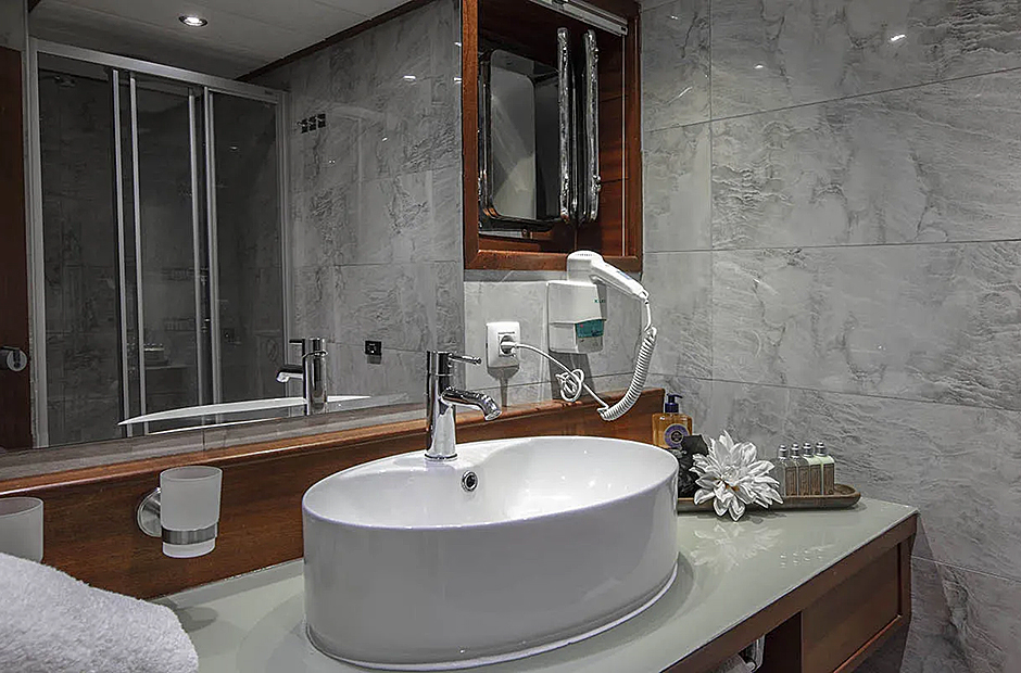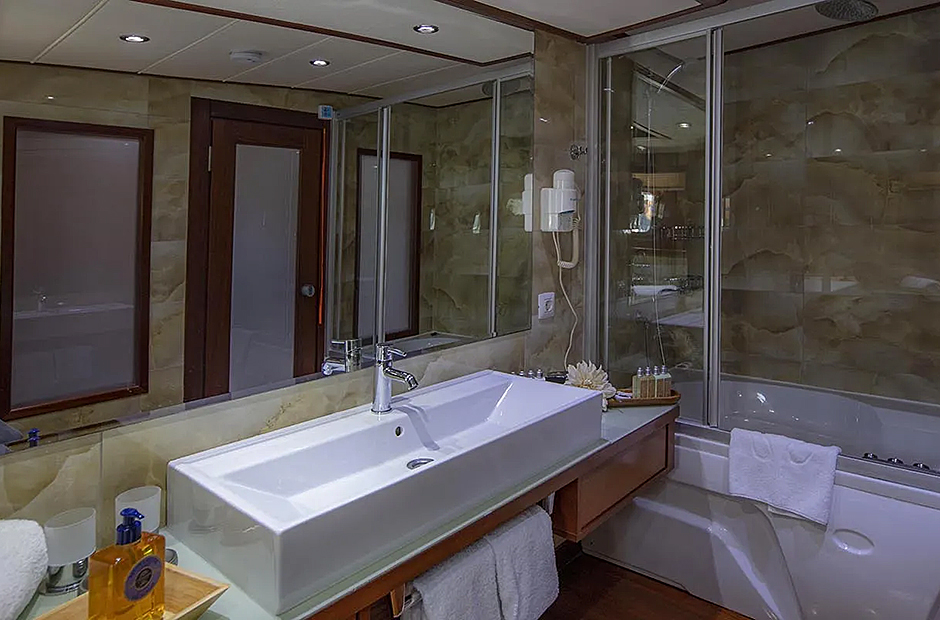 The twin stateroom is big enough for adults and is situated next to the master cabin, ideal for families with children. All Alessandro’s staterooms are of course air conditioned and equipped with a music system, television and minibar.