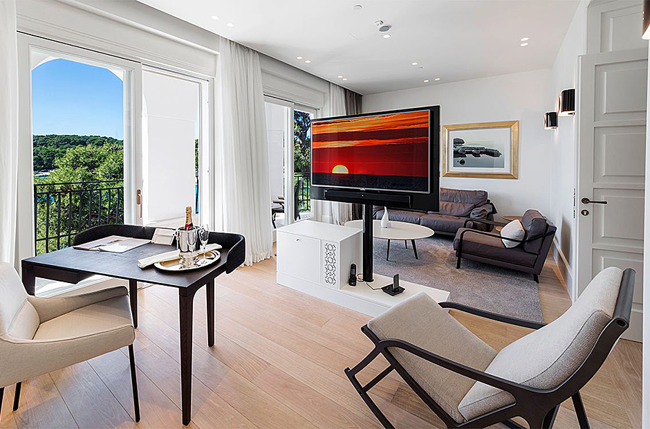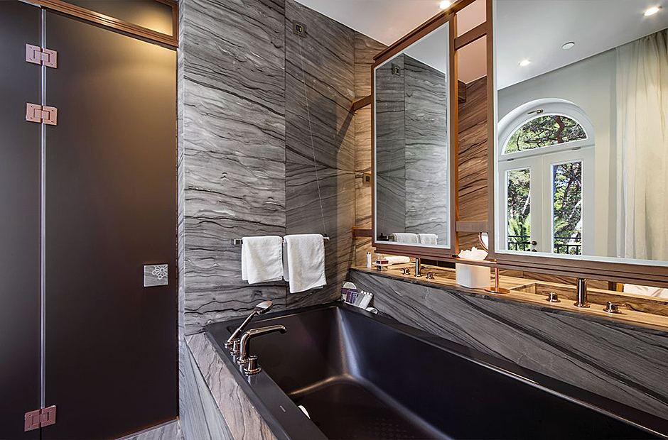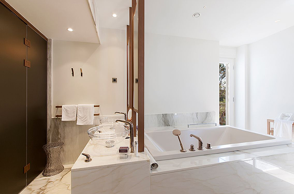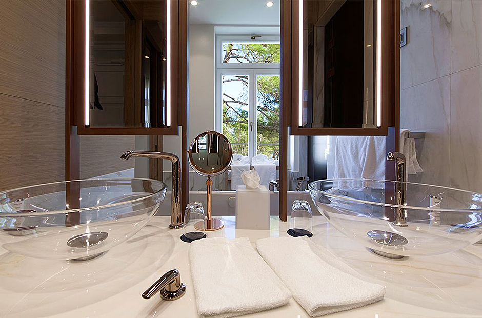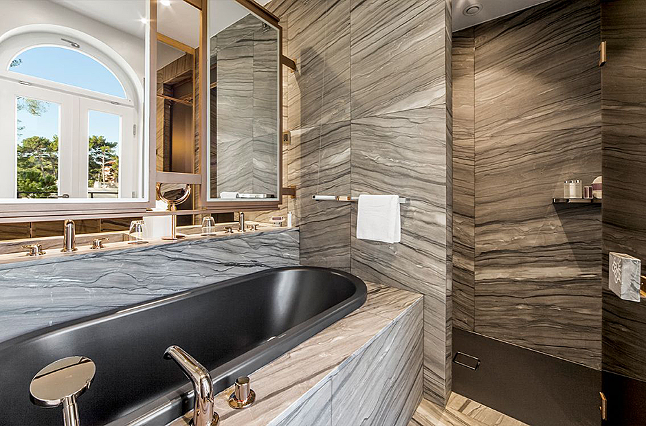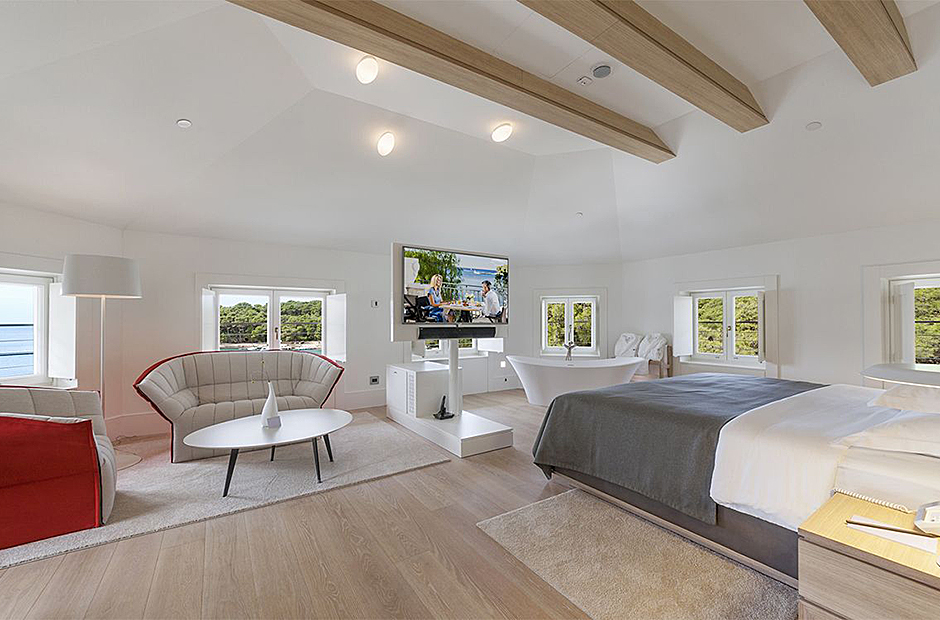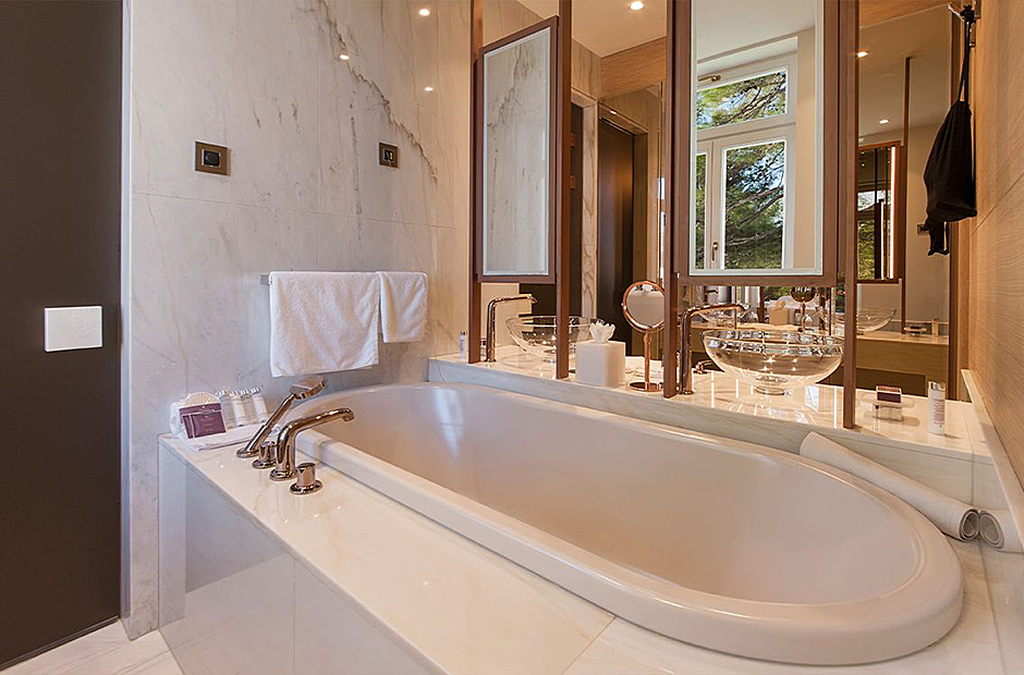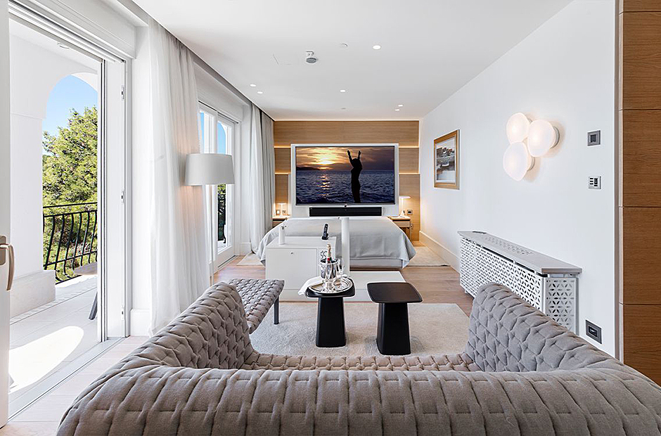 Surrounded by a garden, the villa boasts a heated outdoor seawater pool and an outdoor massage area discreetly tucked away. A private beach, just steps from the villa, invites you to bask in the sea and sun. Indulge in the opulent suites seamlessly designed with integrated bathrooms and terraces offering stunning views of the sea and bay.