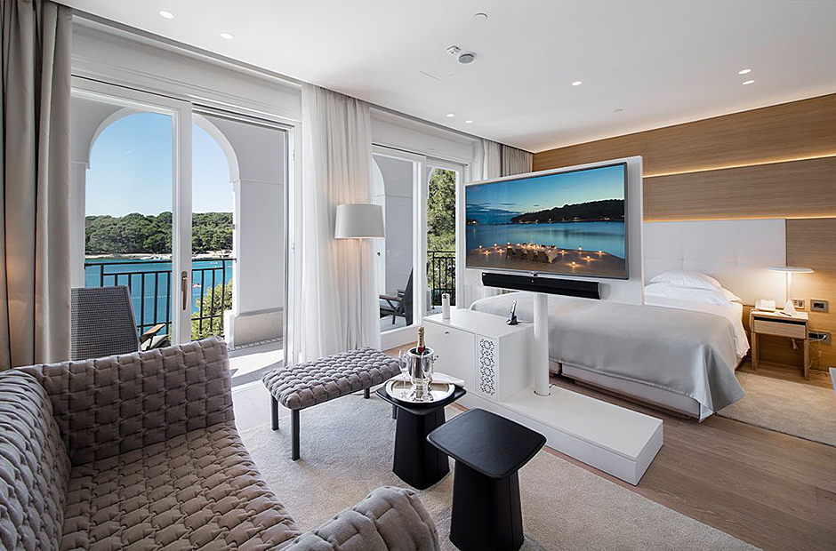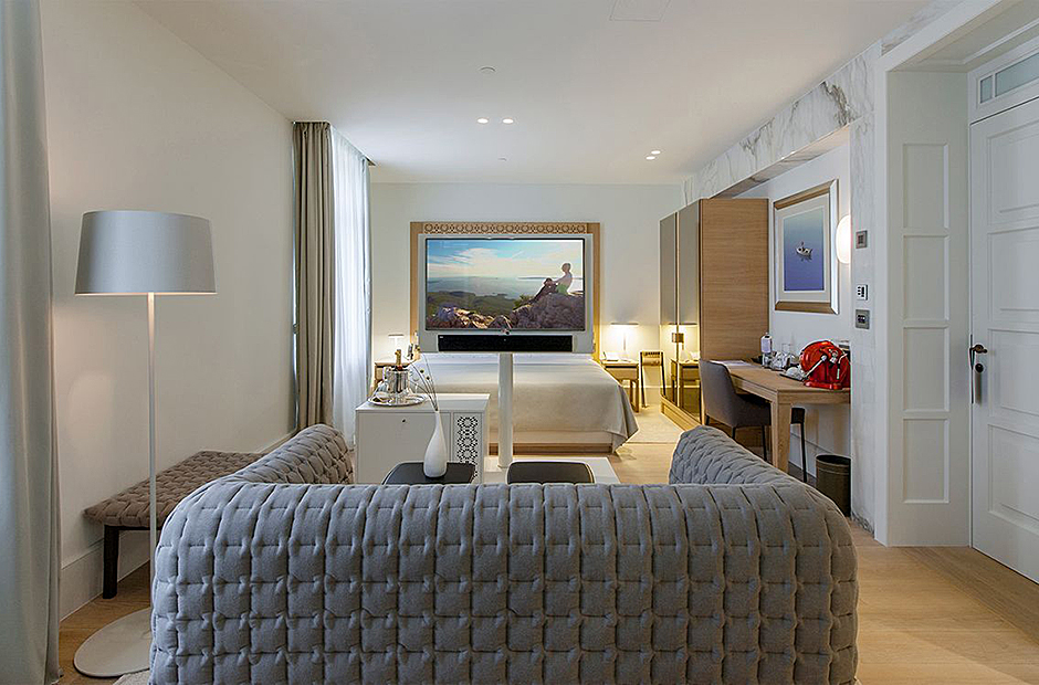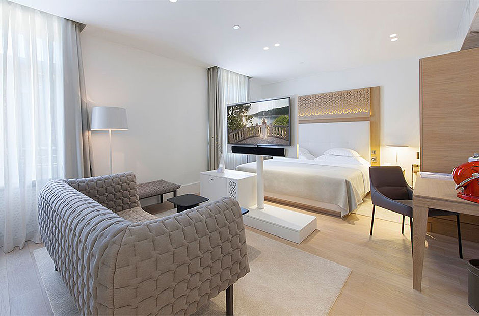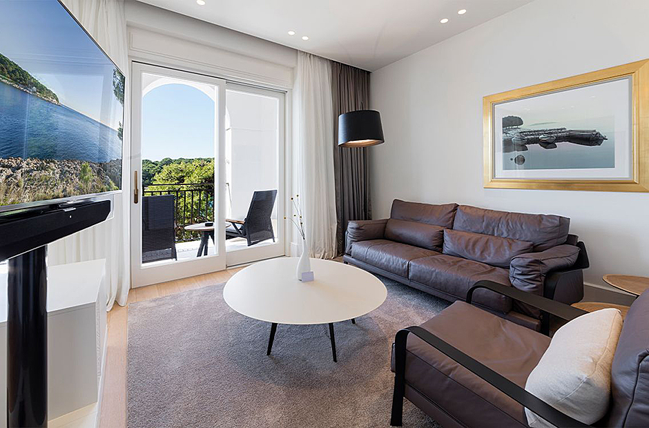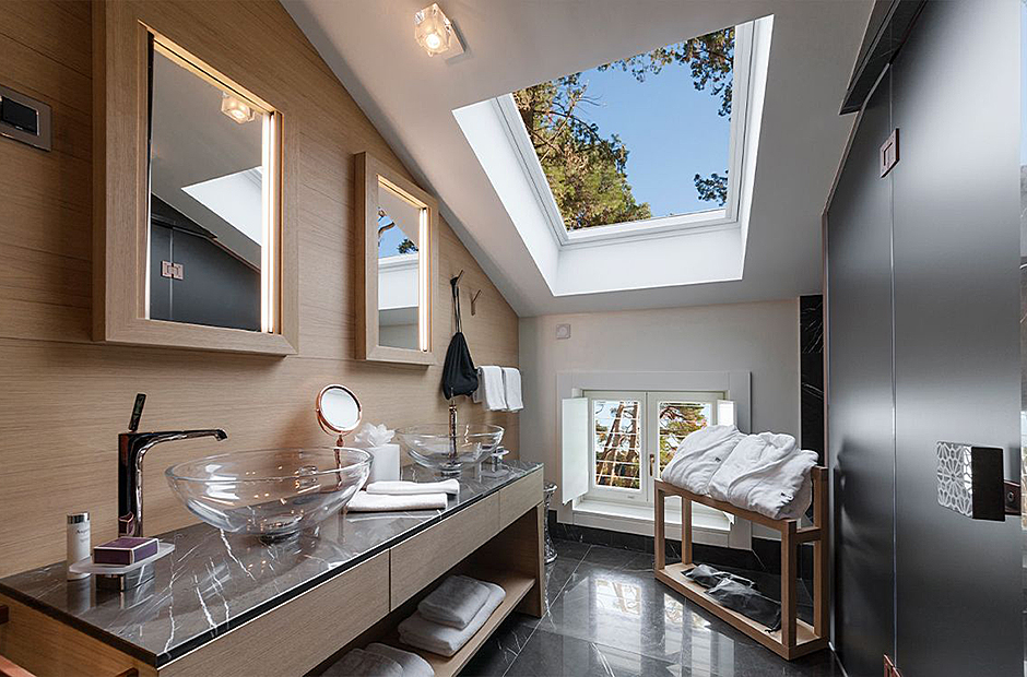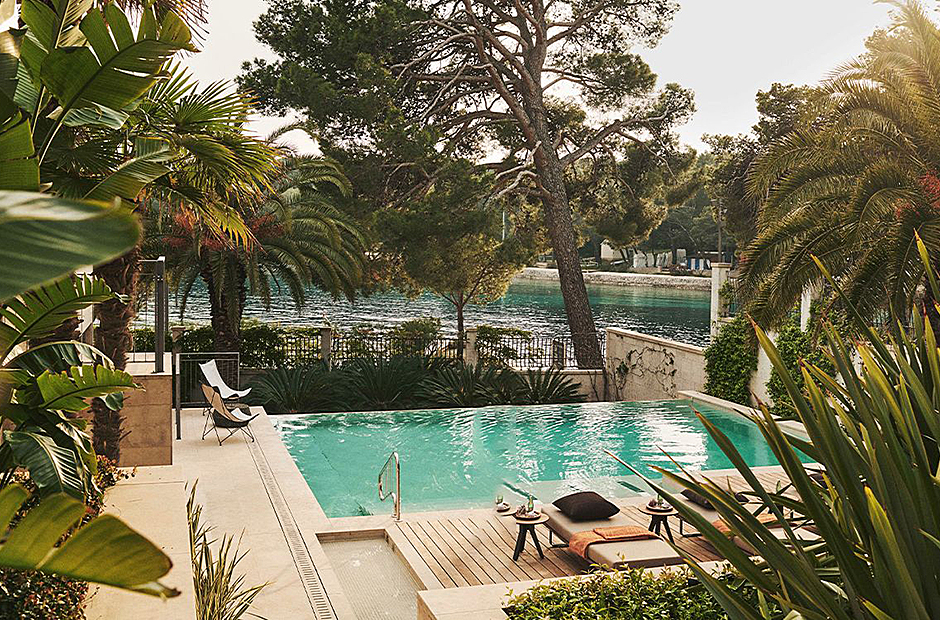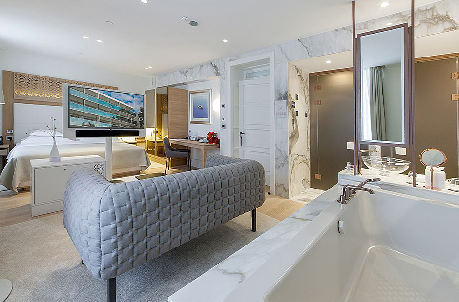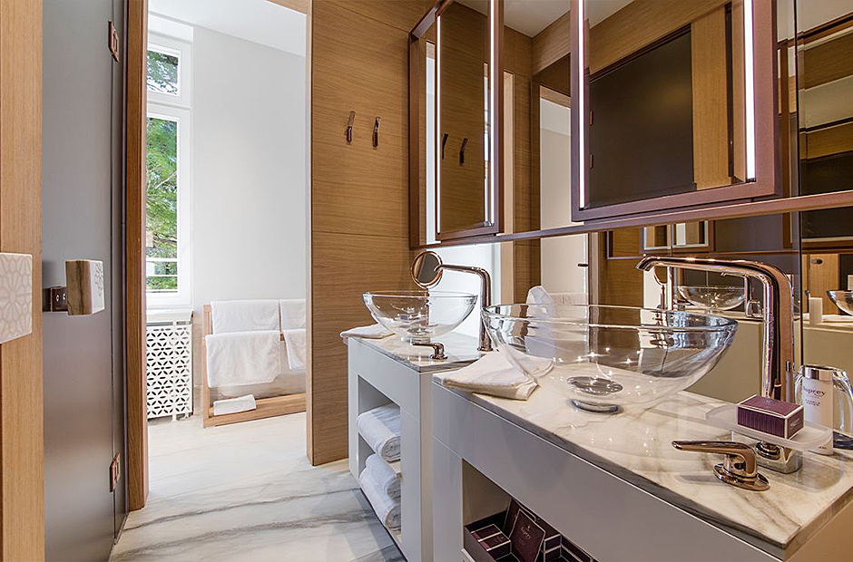 Surrounded by a garden, the villa boasts a heated outdoor seawater pool and an outdoor massage area discreetly tucked away. A private beach, just steps from the villa, invites you to bask in the sea and sun. Indulge in the opulent suites seamlessly designed with integrated bathrooms and terraces offering stunning views of the sea and bay.