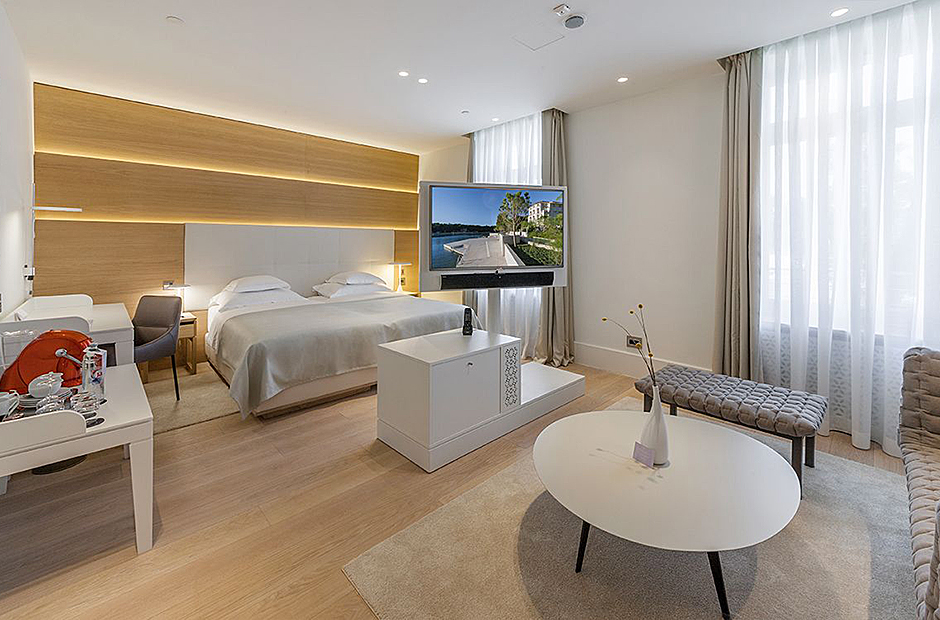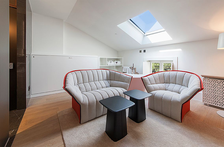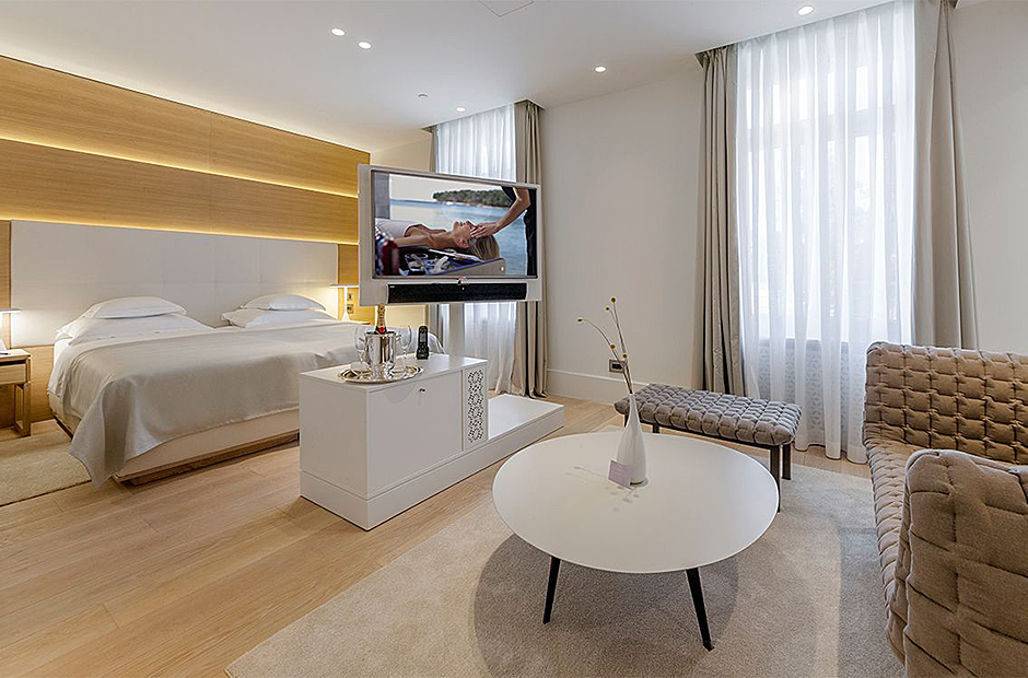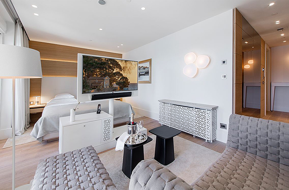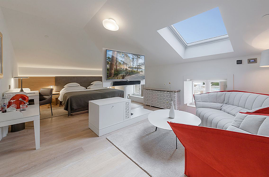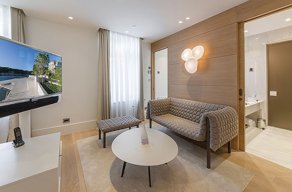 Communal spaces include a dining room with a terrace and a spacious living room with a bar, perfect for intimate gatherings or even transforming into a laid-back meeting room for business obligations. Relax and rejuvenate in the Wellness & Beauty area featuring Finnish saunas, Kneipp fitness, and a unique Spa Clinic at the nearby hotel.