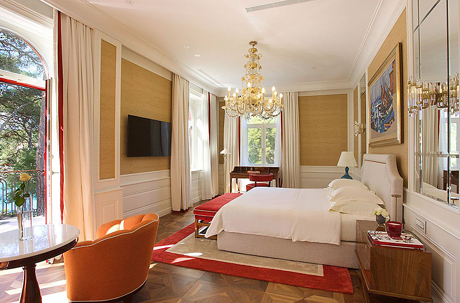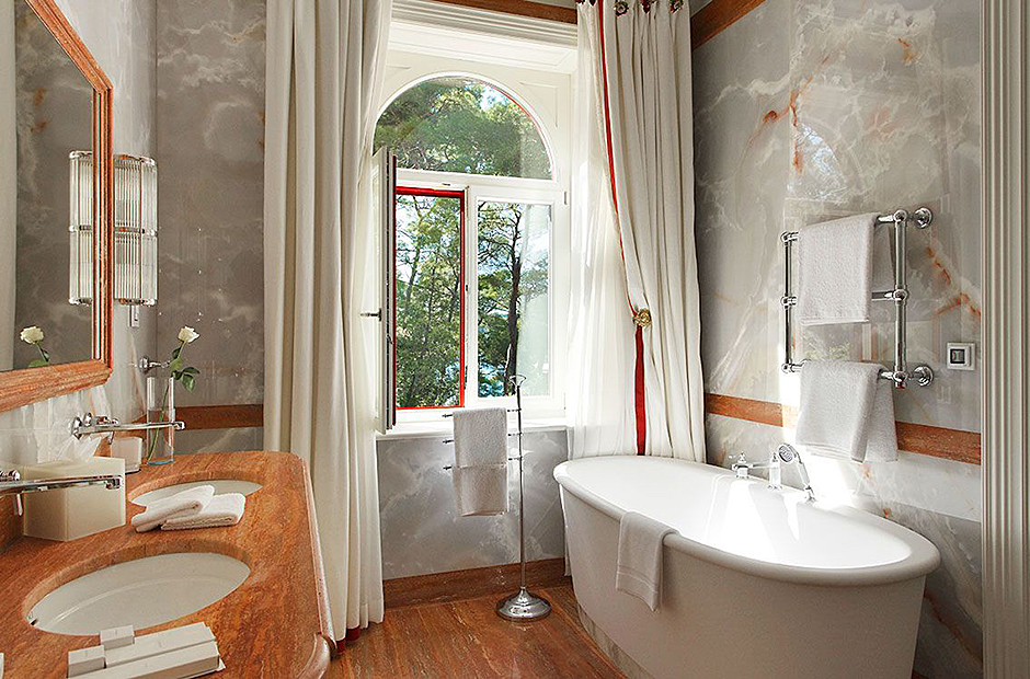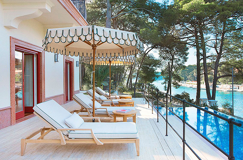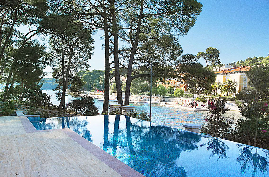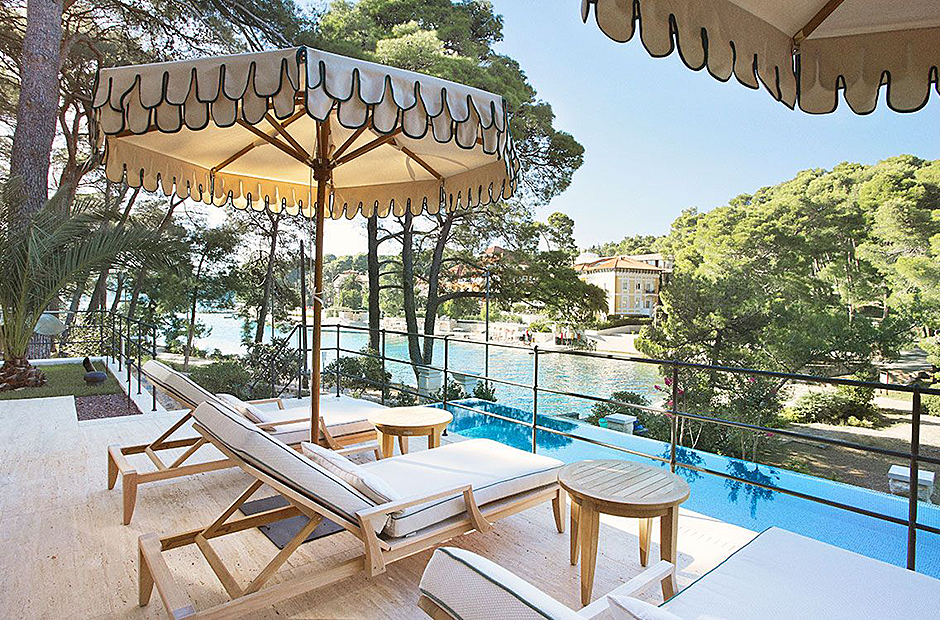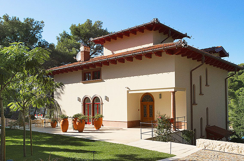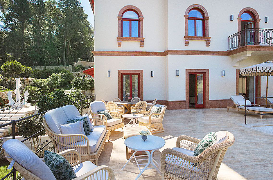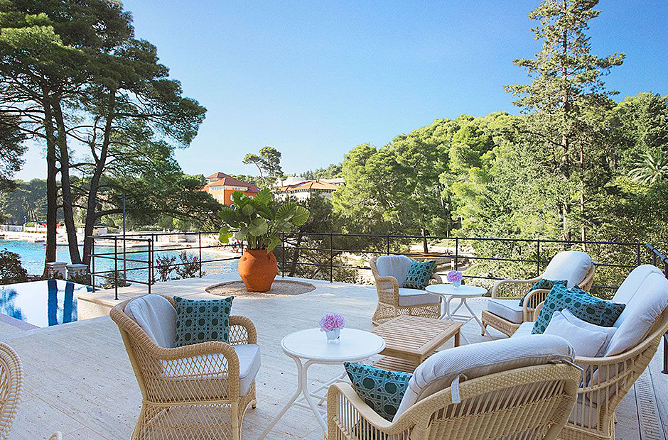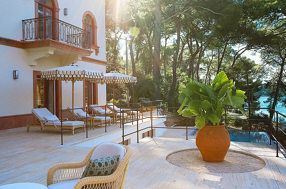 This villa is steeped in the aristocratic history. Nestled in a pine forest, this luxurious island pied-à-terre captivates with its regal arched facade and idyllic location, promising an opulent stay.