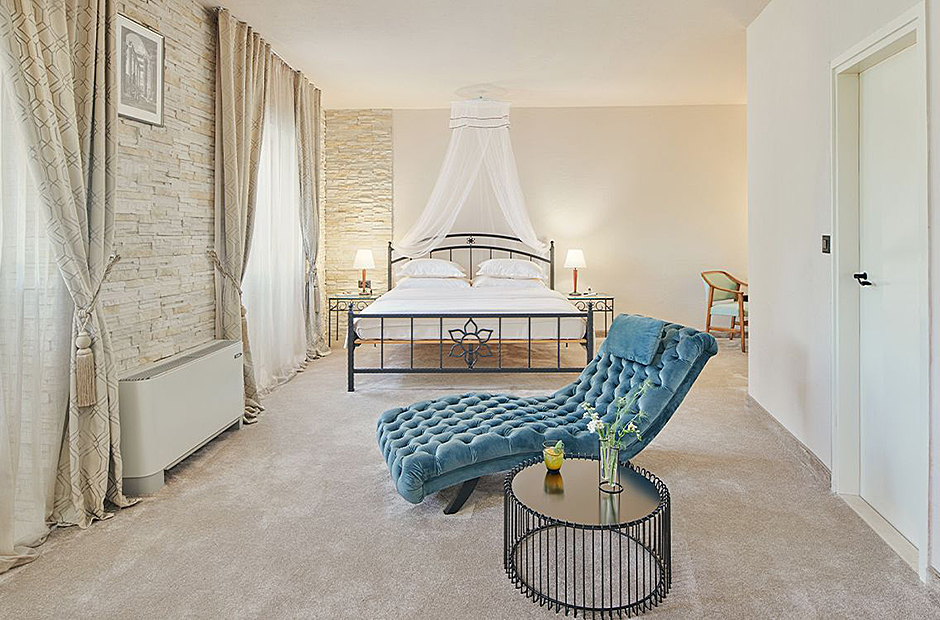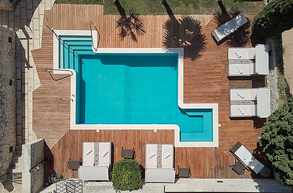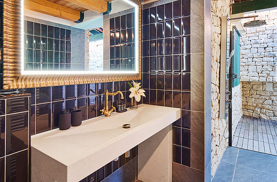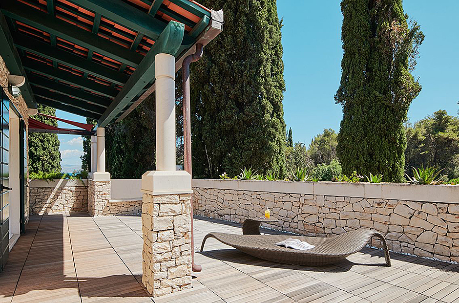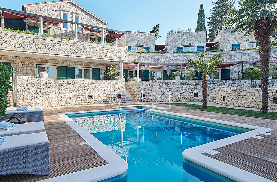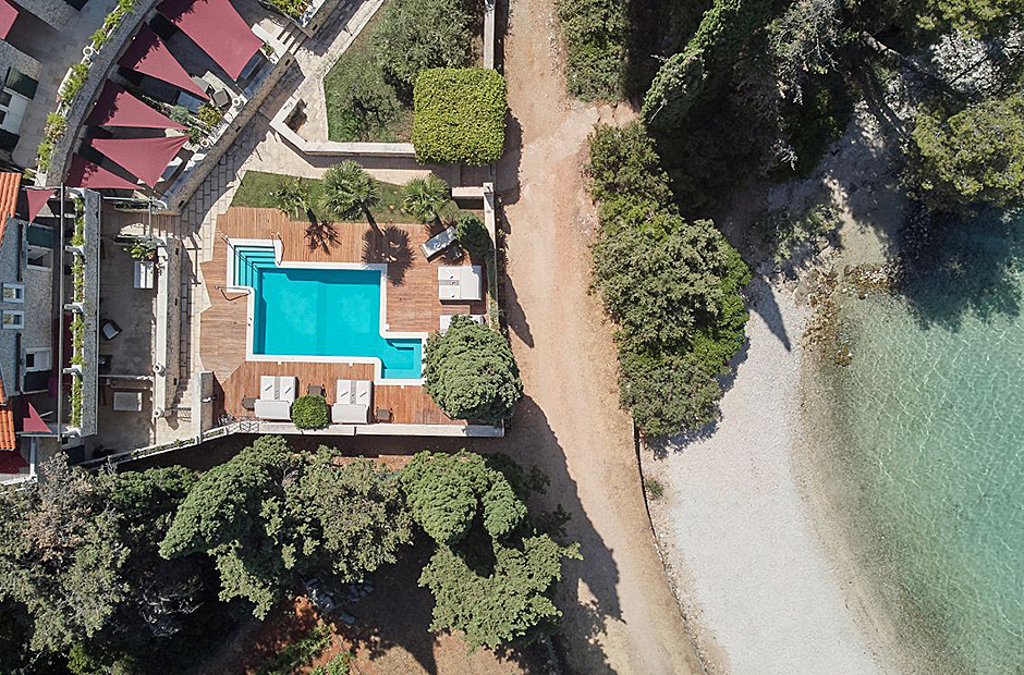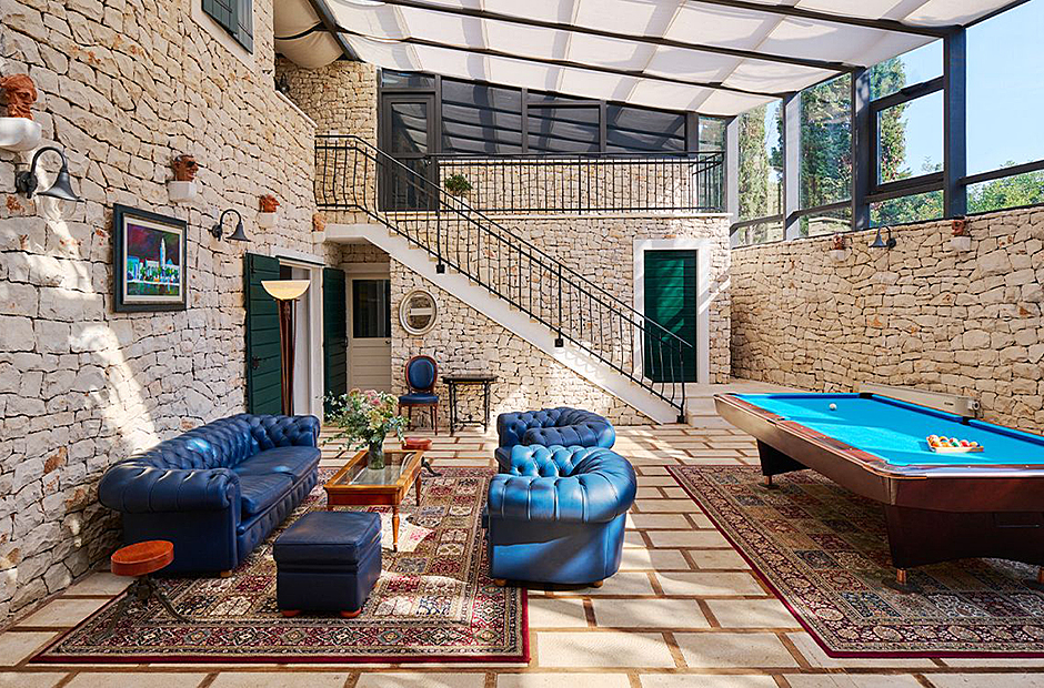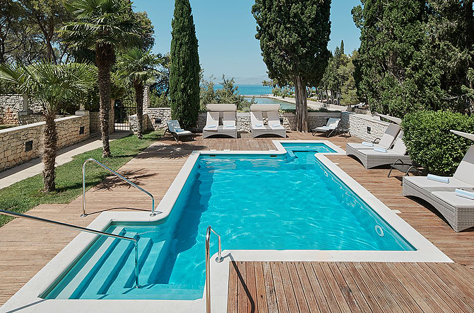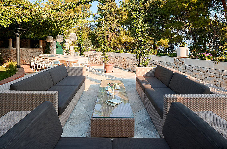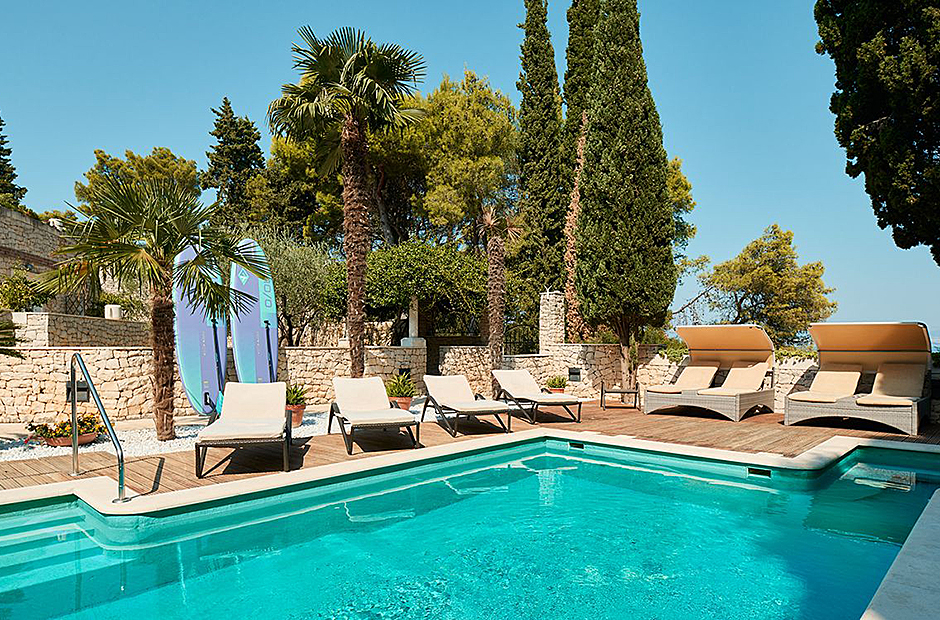 Inside, this villa offers modern comfort with natural materials like wood and the famous white stone from Brač Island, creating a perfect Mediterranean atmosphere. The villa includes a well-equipped gym to keep up with your fitness routine, and a beautiful wellness area with both outdoor and indoor jacuzzis, and two saunas.