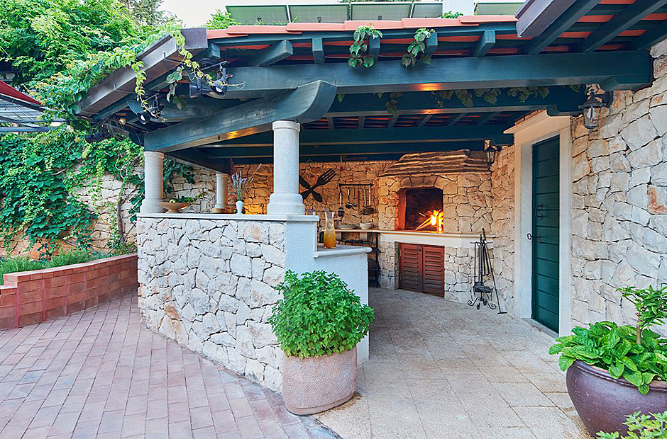 The kitchen is designed for culinary delights, with an outdoor fireplace where you can enjoy local delicacies.