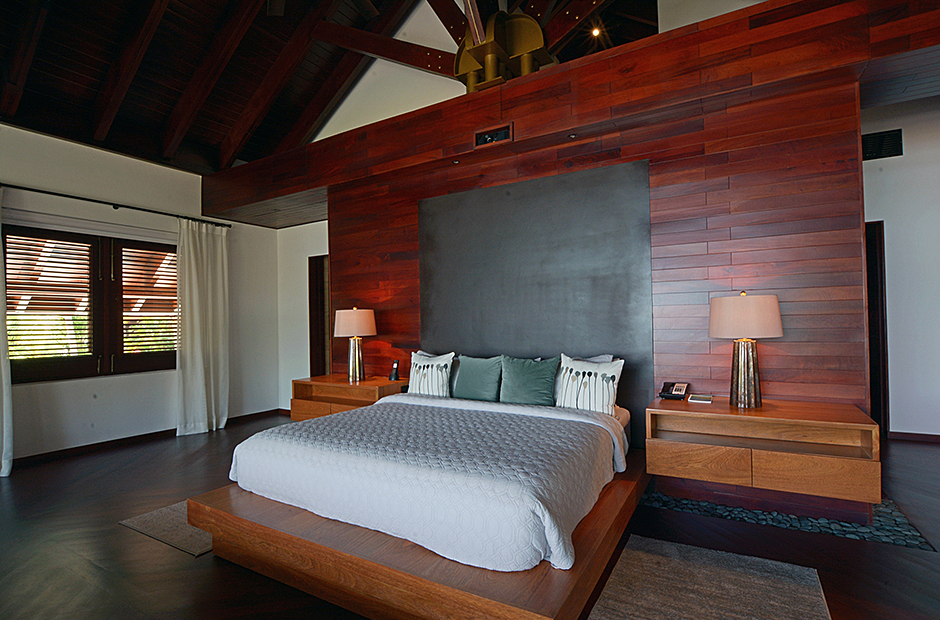 Of the twelve bedrooms, eight are King Suites, two have a pair of queen beds, one has two double beds, and one has a queen-size sofa-bed. The master suite has an elevator, a home theatre, and views to the end of the world.