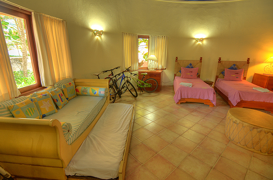 There is an additional module that includes two rooms which share a family room. One of these rooms has five twin beds and the other includes a king bed . All rooms have their own private bathrooms, walk-in closets and air conditioning.