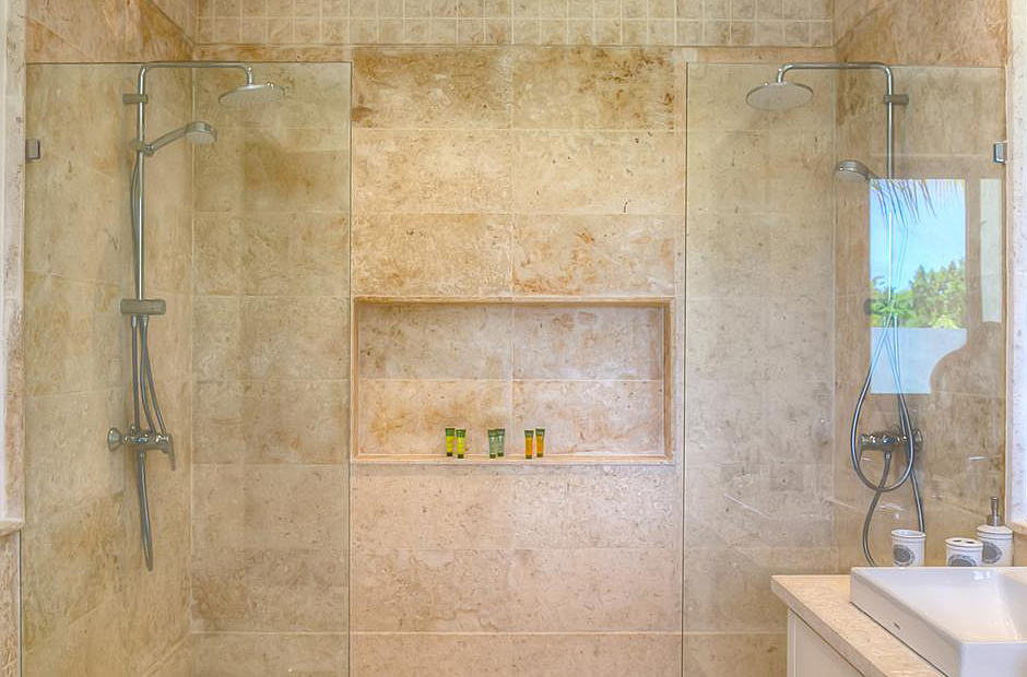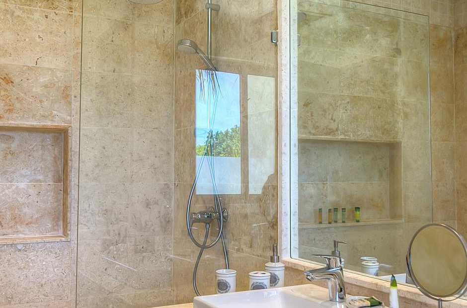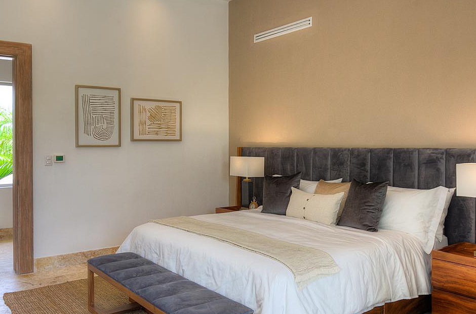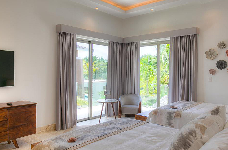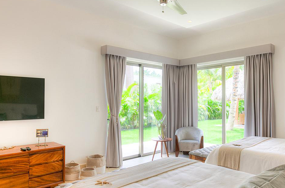 Surrounded by golf courses and green meadows this property offers a tranquil and relaxing stay in any of its 5 bedrooms coupled each with its own ensuite bathroom. The master bedroom, located on the second floor has a king-size bed and on the same floor there are two other bedrooms, one with two queen size beds and the second one is the second master bedroom with a king size bed. On the ground floor you will find two other bedrooms, one with 2 bunk beds and the next one with 2 queen. All rooms include air conditioning and TV's with international cable channels.