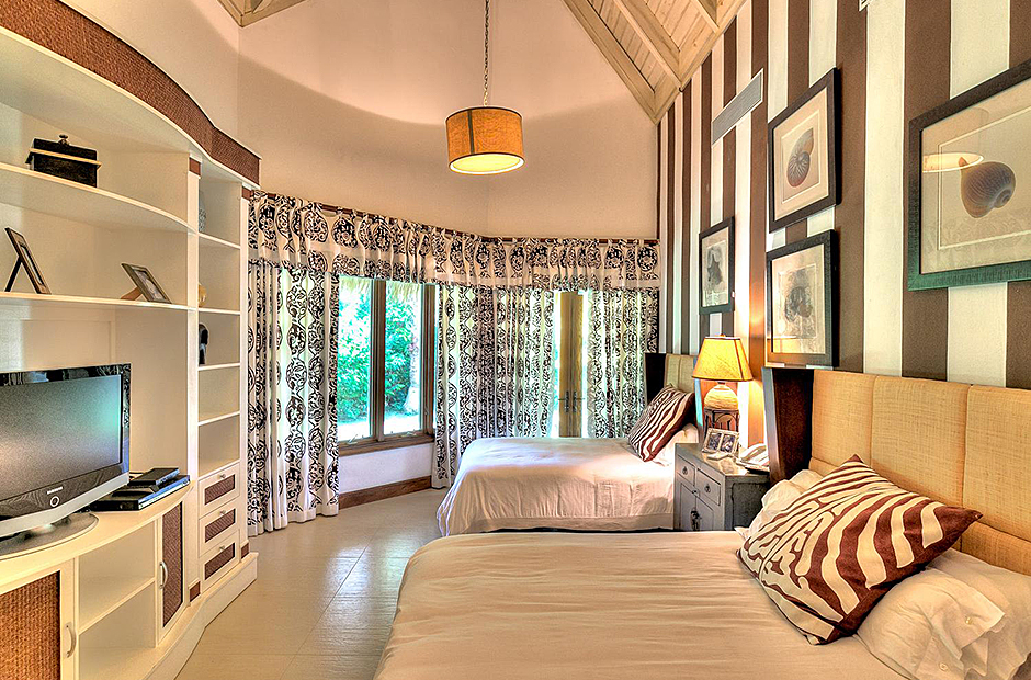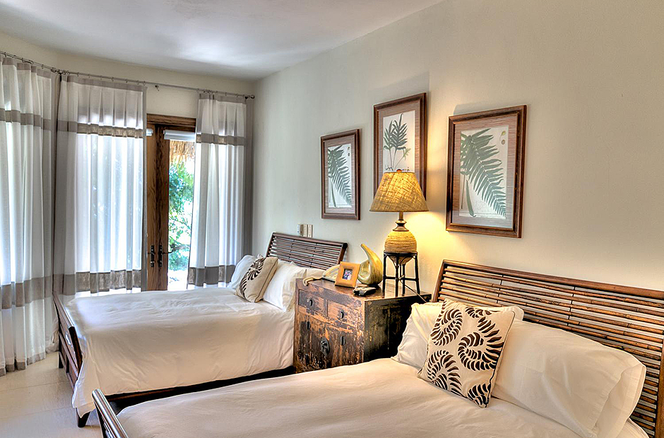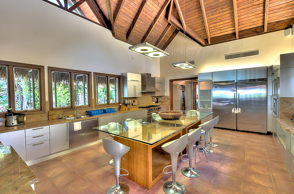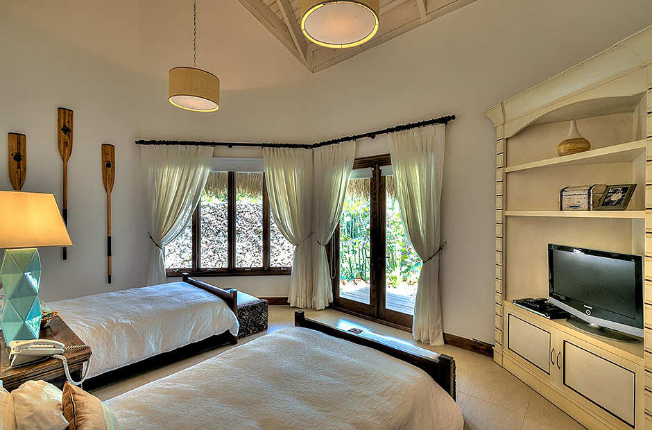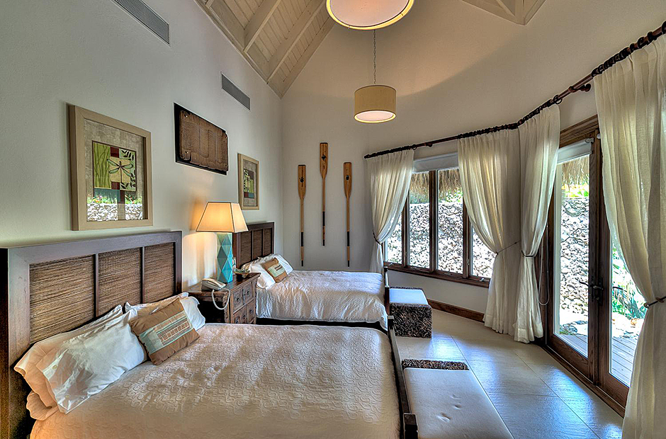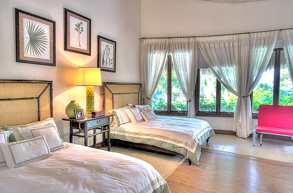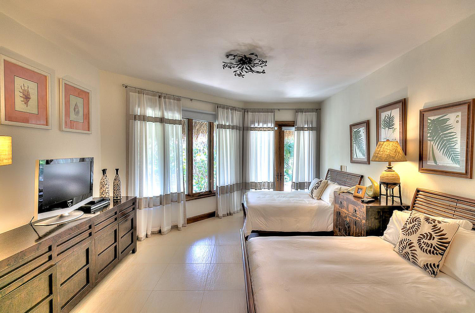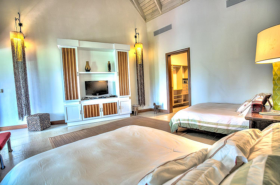 The master bedroom includes a king size bed with ocean views, with an open space bathroom, walk-in closet. The other 4 bedrooms suites with a two-queen size bed each, are equipped with flat TV, books library and walk-in closets.
