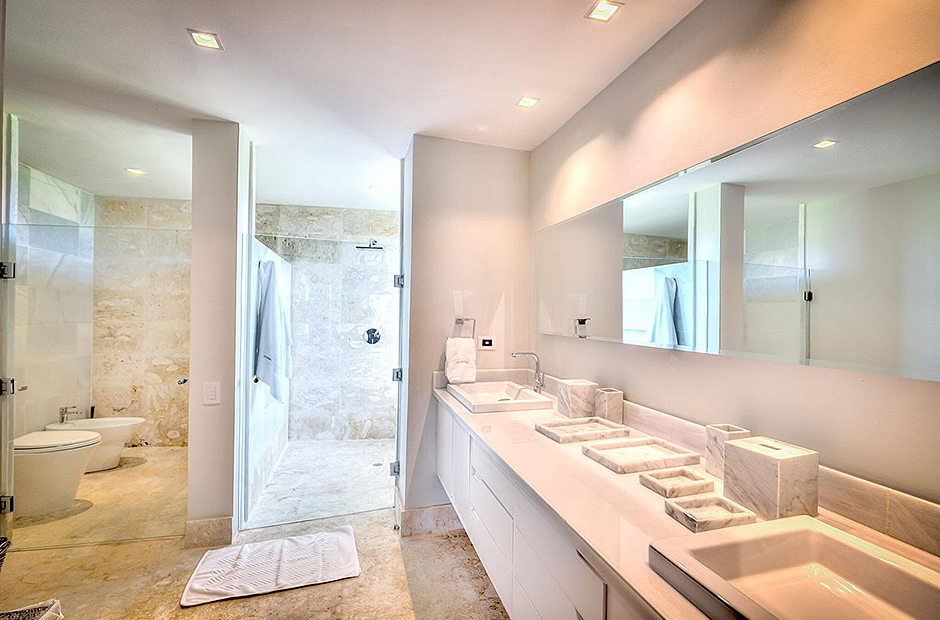 This six bedroom luxury villa has been designed by a famous Venezuelan architect and reflects pure Caribbean luxury and comfort of a 5 star home. The Master bedroom #1 and second Master Bedroom #2 are equipped with 1 king size bed, bedrooms #3, 4 and 5 are equipped with 2 queen size beds each for a total of 8 beds. A 6th bedroom was recently added on the second floor with 2 full beds and ensuite bathroom.