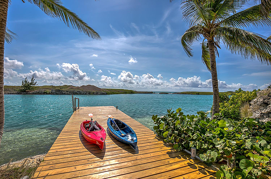The rest of the villa includes a spacious and fully equipped kitchen, gorgeous living spaces, top notch dining room, 2 TV rooms, high speed WiFi internet, Fully equipped GYM, sandy area with a dock to step right into the water. 2 Kayaks are also included in the rental price.