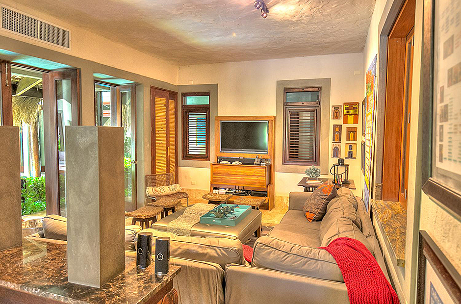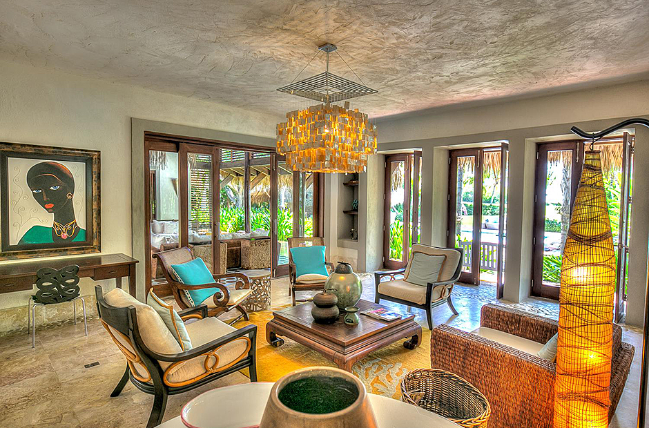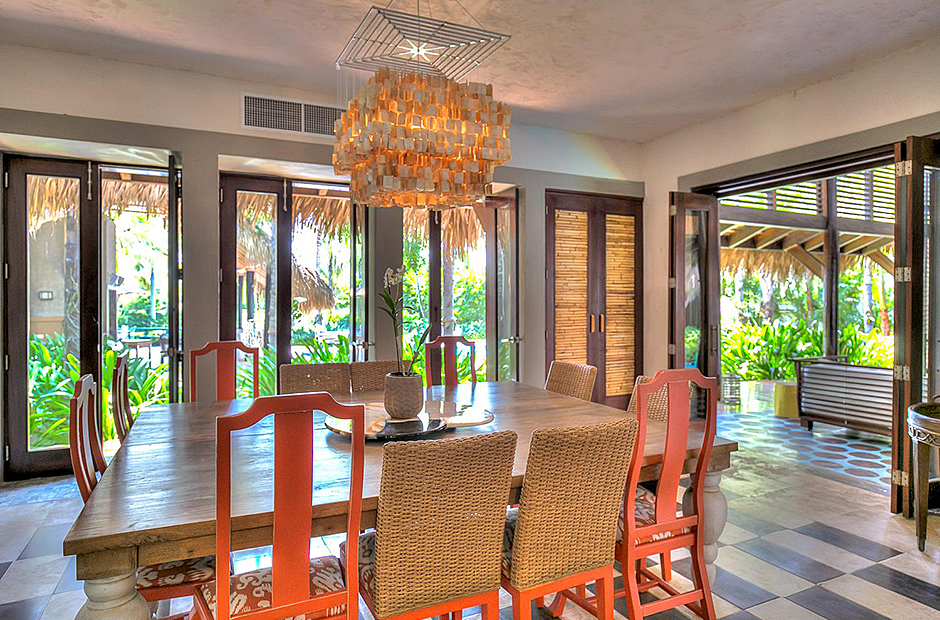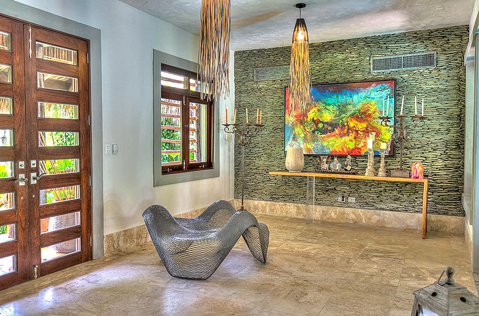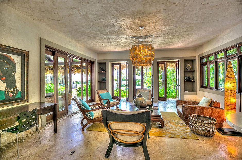 The 6 bedrooms, 6.5 bathroom villa has been stunningly sited in nature gardens by an award-winning Dominican landscape architect. The entire home is beautifully furnished with either imported or custom-made furniture and accented with pieces collected by the owners on their trips around Dominican Republic, Europe and Puerto Rico. The home has a sophisticated rustic and rural flair while maintaining a comfortable tropical elegance. It is surrounded by tropical vegetation and hidden between beautiful flora ensuring extreme privacy and calm atmosphere.