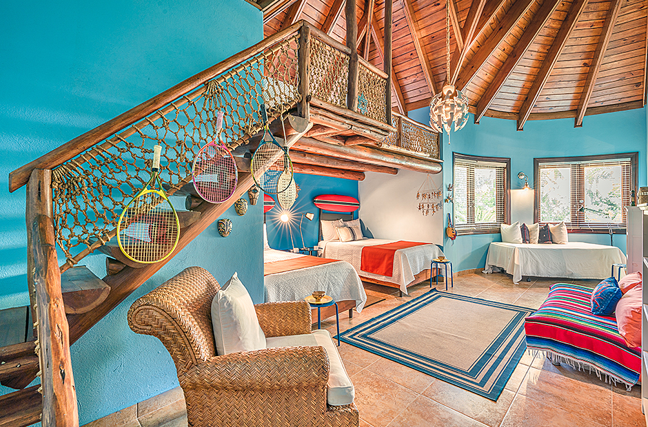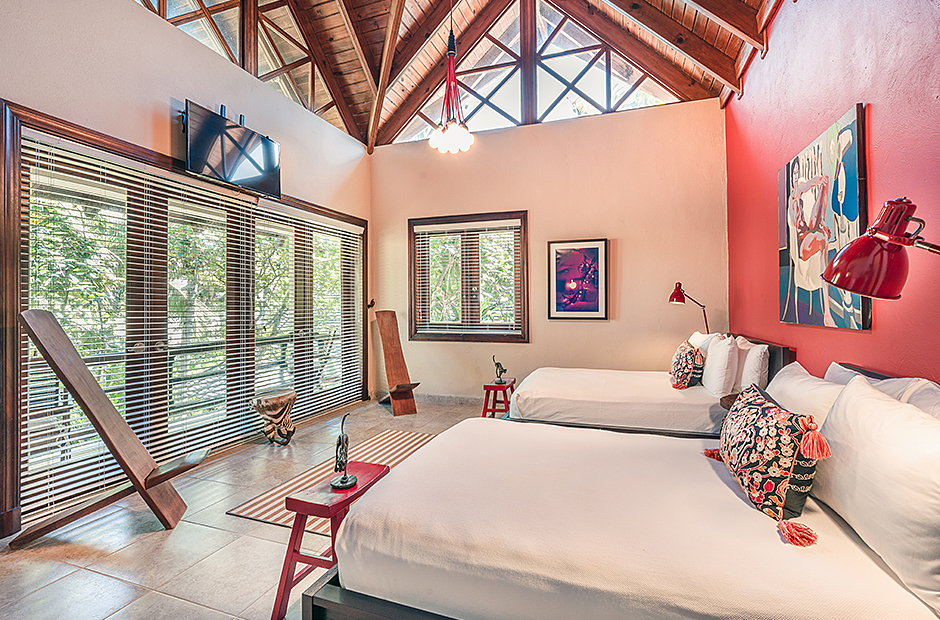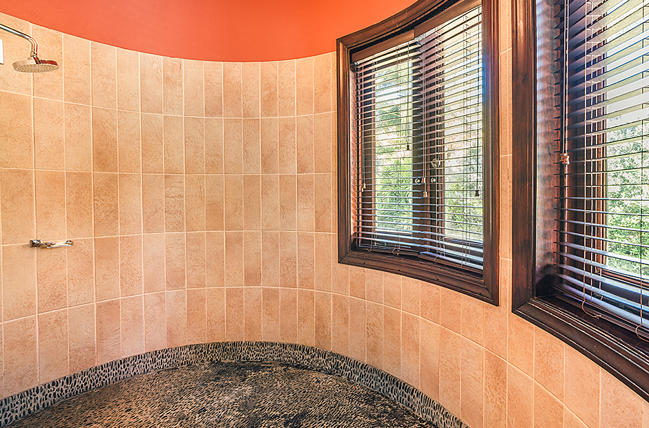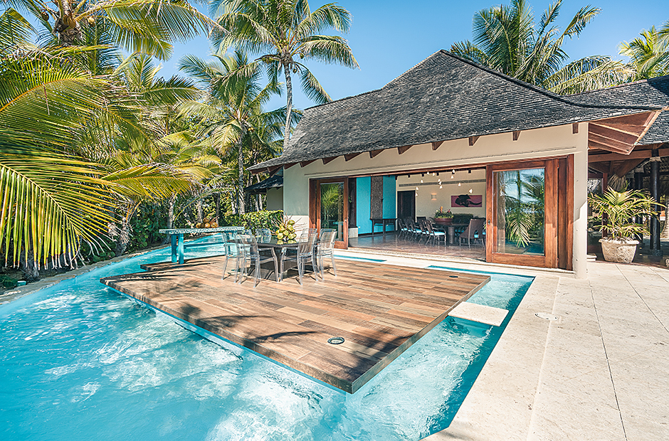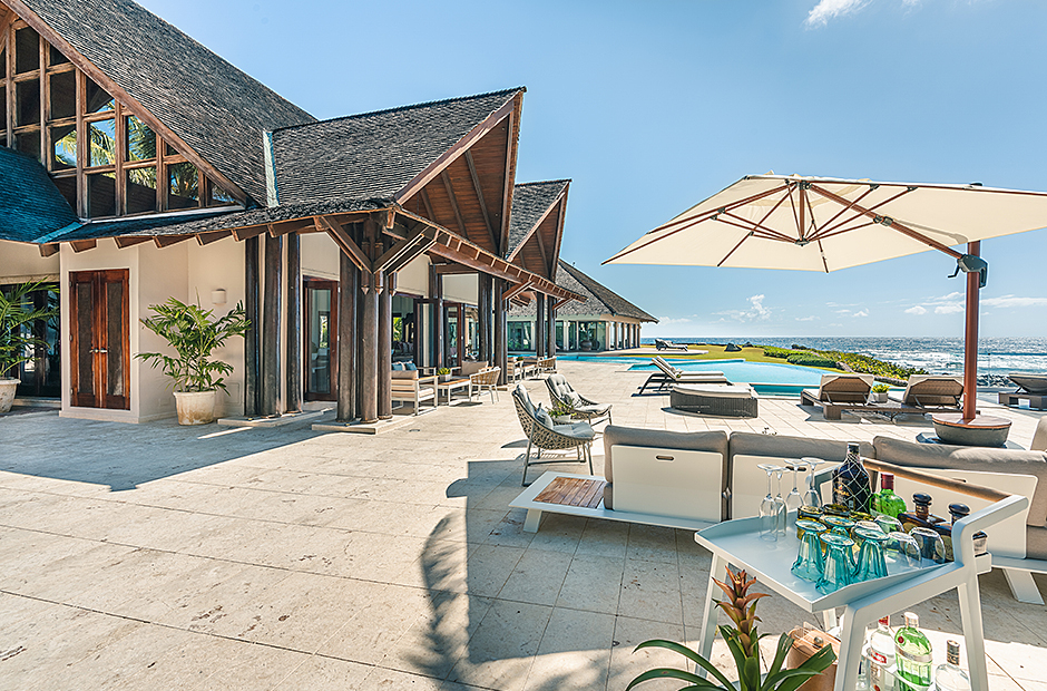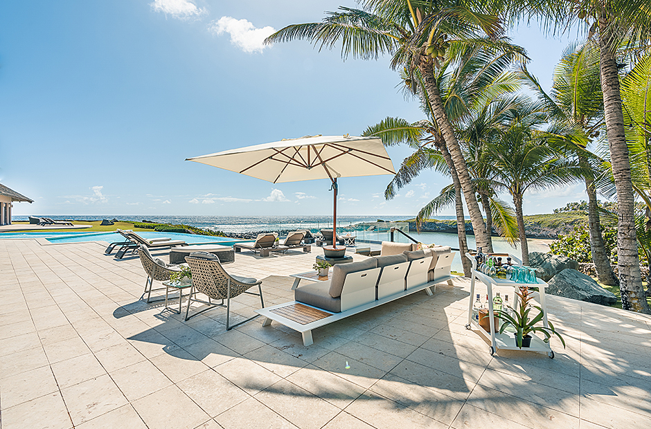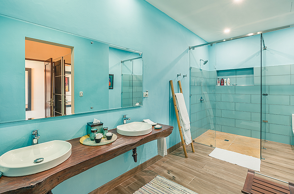 Raised upon a cliff with mesmerizing and outstanding views to the Caribbean Sea, this villa was thought by its owners as a perfect combination and balance between comfortability and the rustic exoticness. Governed by strident colors and hardwood, the main entrance welcomes you offering warmth and a mystic ambiance taking you to the dining room, presented with a high wooden roof and decorated with remarkable African details that will keep you focused for a while and a large wooden table with 14 seats lighted by a modern chandelier interrupting the rustic atmosphere. Next is the impressive living room with exquisite views to the Beach and the Caribbean sea and the vaulted high-ceiling with wood, endowed with a comfy sitting area and a large table.