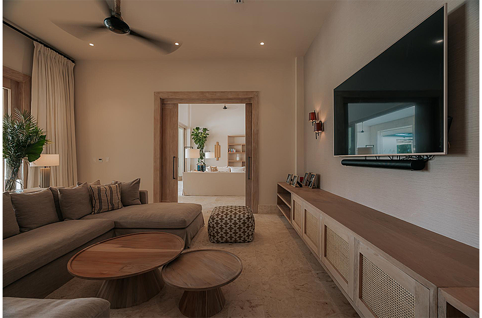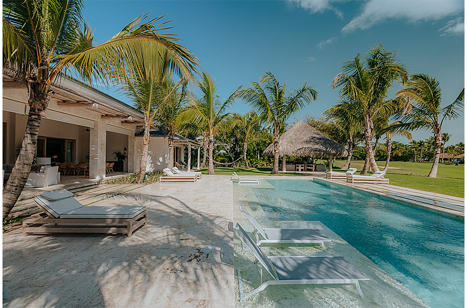 Step into this newly built luxury villa and discover a sober and avant-garde space with minimal and tropical details specifically chosen to make each guests stay as memorable as possible. Indulge yourself and enjoy all the perks of its large living room with a variety nouveau furniture mixed with traditional Caribbean style, which has access to a beautiful evergreen private garden with unique golf course views.