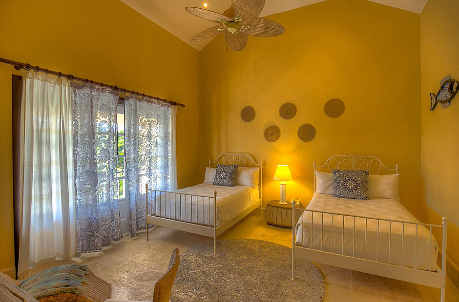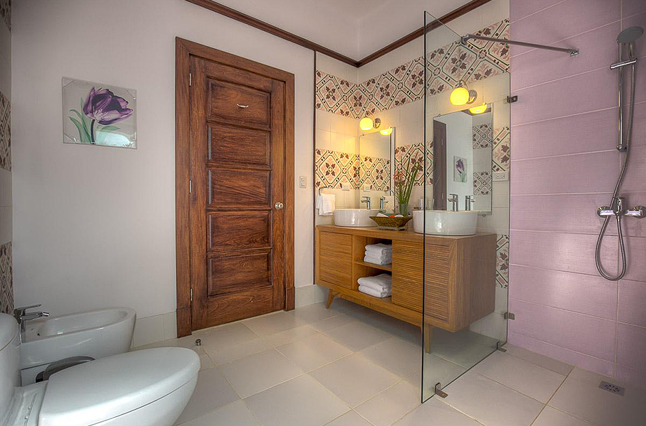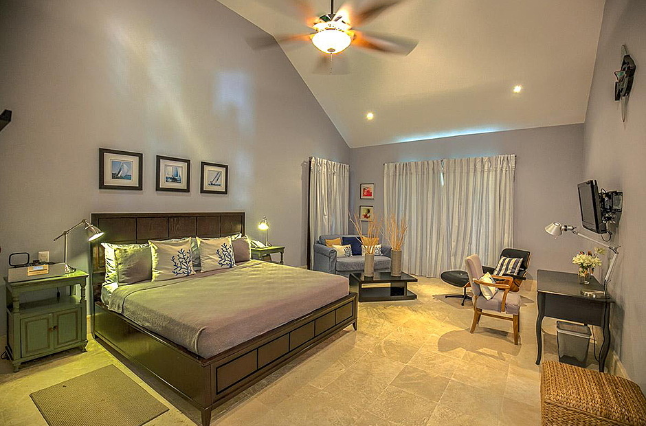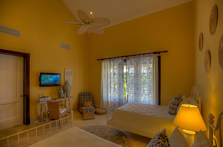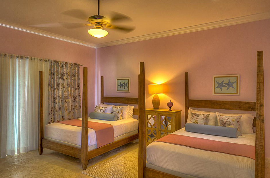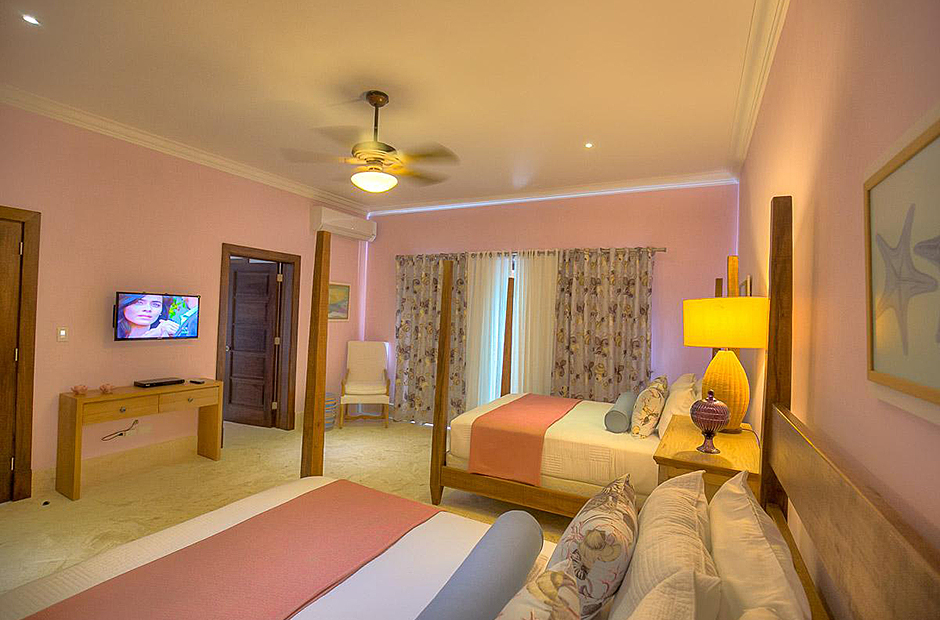 The second building has 4 bedrooms, 2 bedrooms have king size beds and 2 bedrooms have 2 full size beds. All rooms include air conditioning, TV, private bathroom and walk-in closet.This villa also has a fully equipped kitchen, extensive living room terrace & dining room, private courtyard with swimming pool.