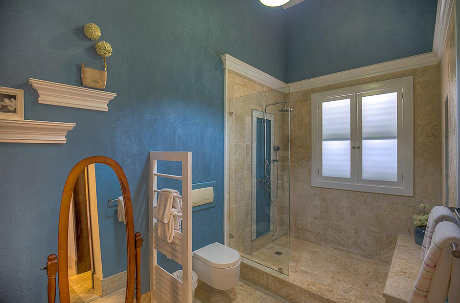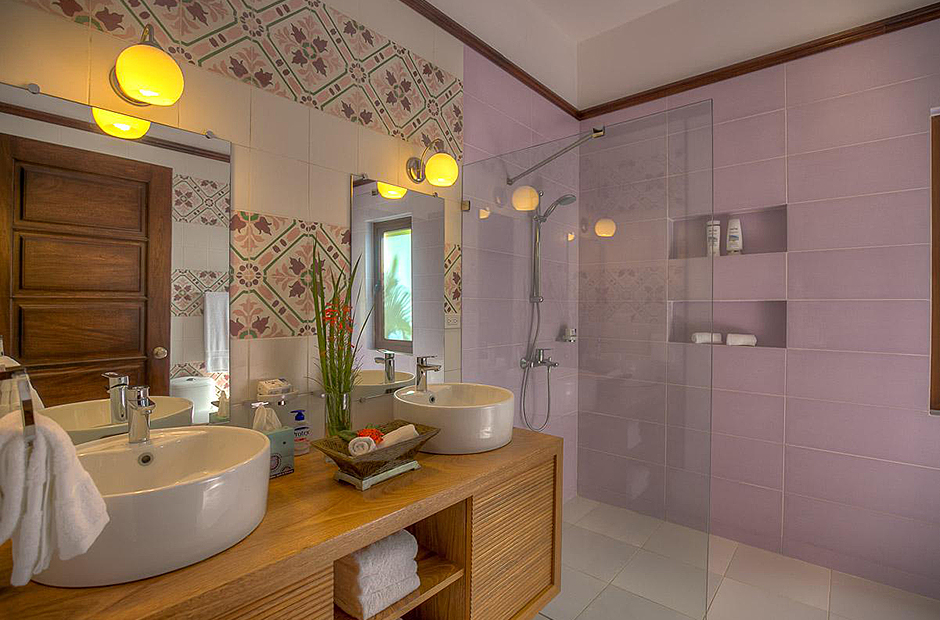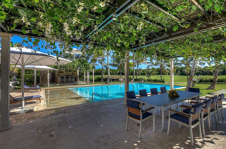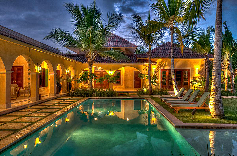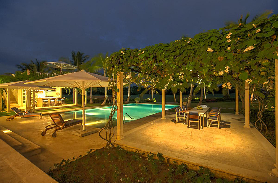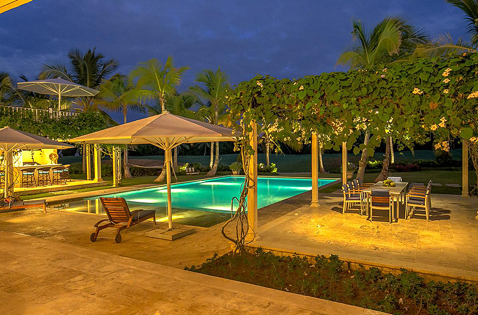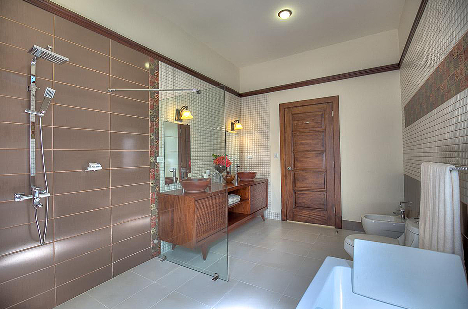 The second building has 4 bedrooms, 2 bedrooms have king size beds and 2 bedrooms have 2 full size beds. All rooms include air conditioning, TV, private bathroom and walk-in closet.This villa also has a fully equipped kitchen, extensive living room terrace & dining room, private courtyard with swimming pool.