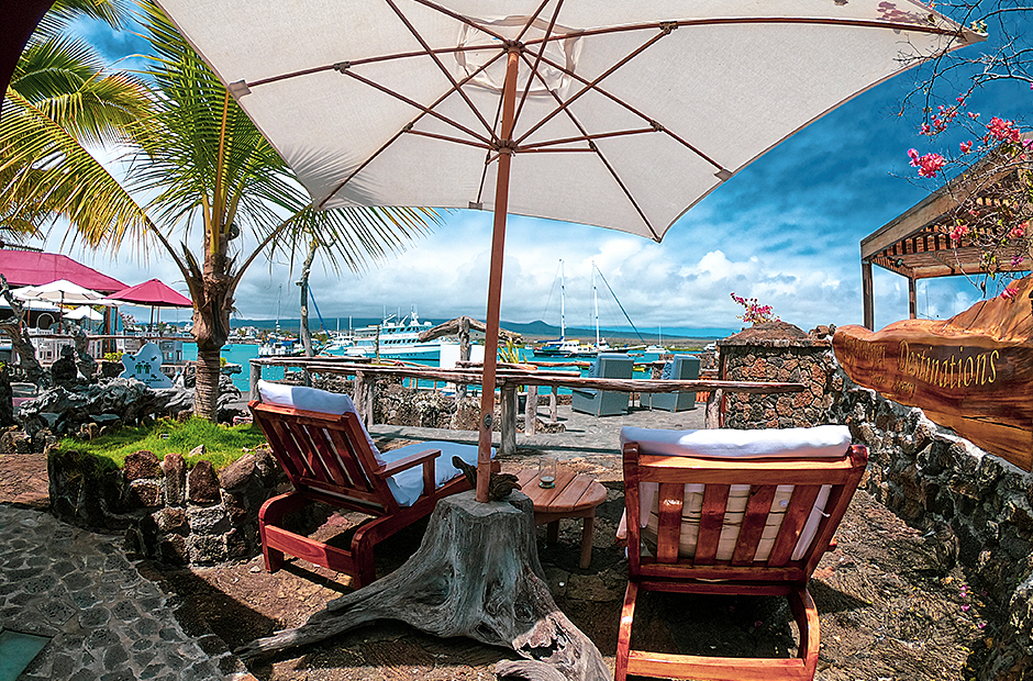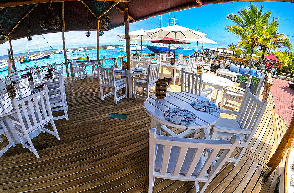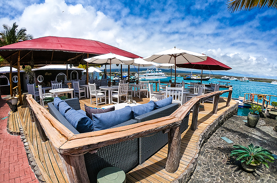 Enjoy the sun on the terrace, a drink in our cozy cafe, have lunch or dinner on the waterfront deck, experience a beautiful Galapagos sunset and feel the enchantment of these unique islands together with family and friends.