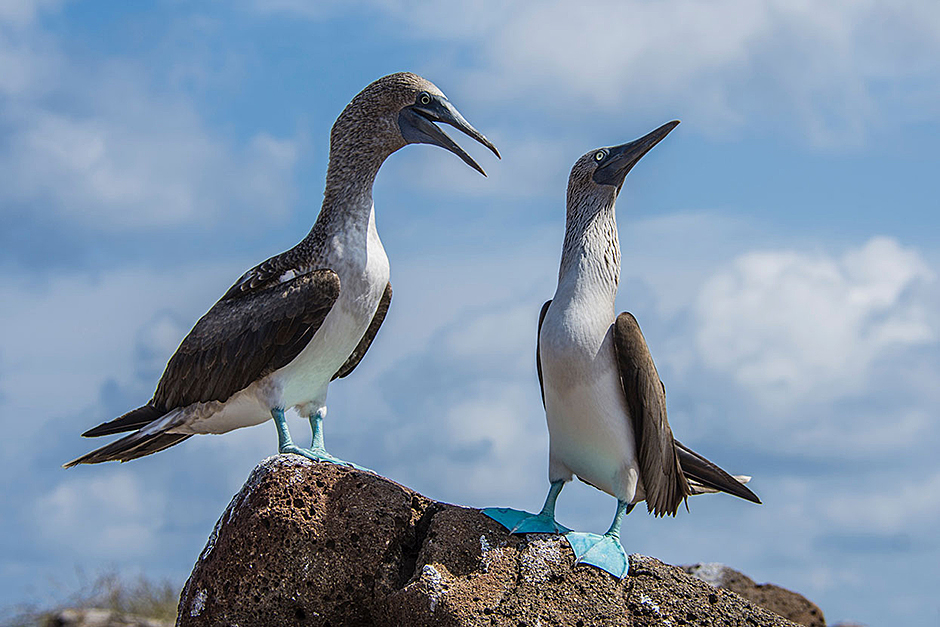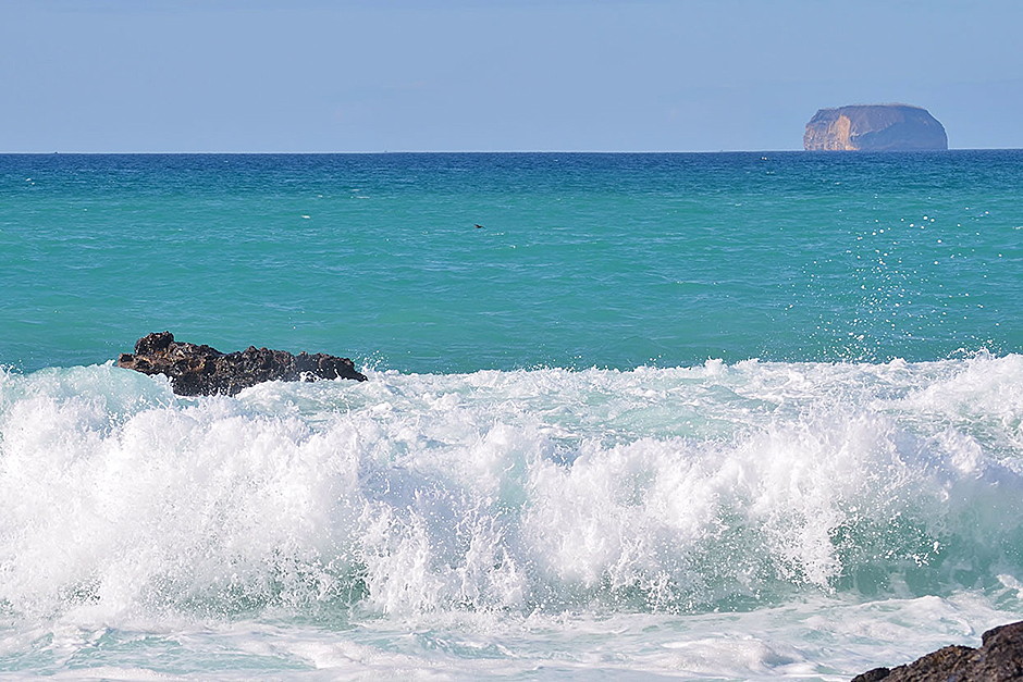 The islet of Eden is the remains of a volcanic "tuff cone" - a type of volcanic feature formed when molten lava comes into contact with cold sea water with explosive results. There is an abundance of wildlife here, on land, in the air and in the water. Among other seabirds, you'll see Blue-Footed Boobies diving to catch their prey. Snorkeling from your boat, you're likely to see Galapagos green turtles, rays and sharks, in the clear, shallow waters, particularly if you are close to the mangroves on the shoreline.