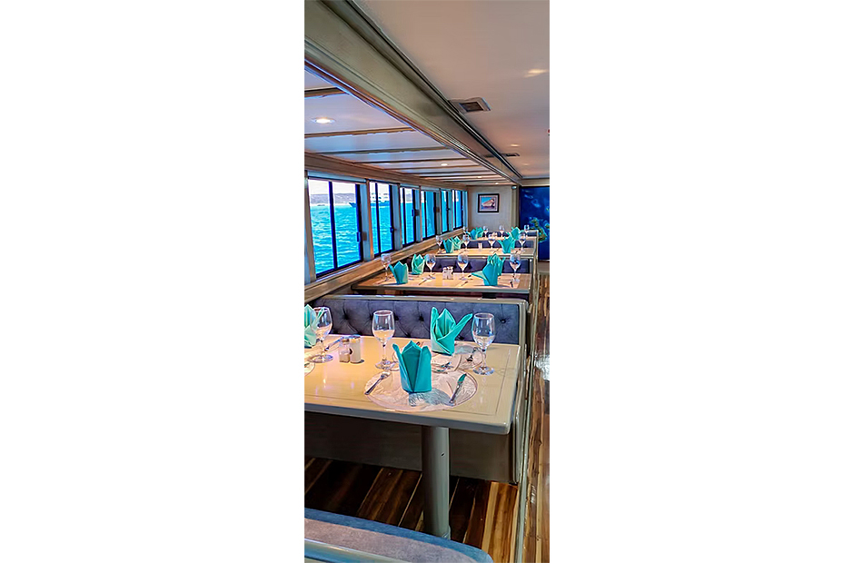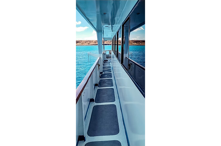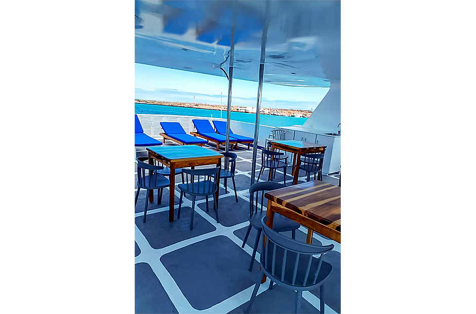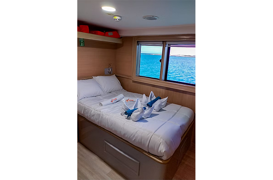 The renewed Yacht offers comfort and ample space on board while cruising around the Galapagos Islands. Its ocean-front cabins offer unparalleled comfort and private facilities: 4 Upper deck cabins with panoramic windows and 4 Lower deck cabins with portholes to
