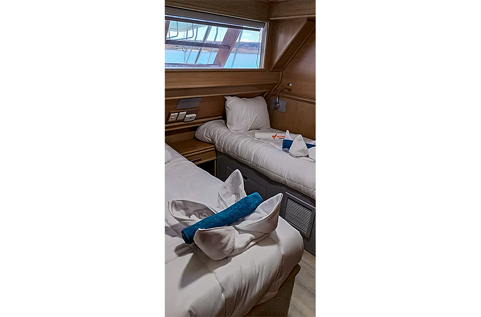 accommodate up to 16 guests for a naturalist adventure of a lifetime; 2 Lower Deck cabins can be enjoyed as Triple cabins, ideal for small family or friends. A special plus on board our Yacht for our valued guests is that we can offer WiFi service at no extra cost (signal may vary between locations).