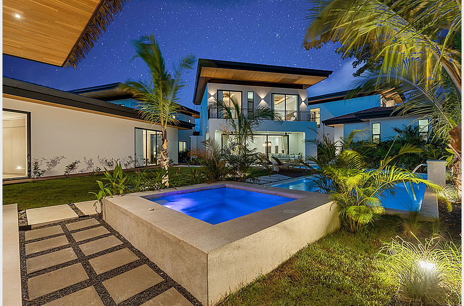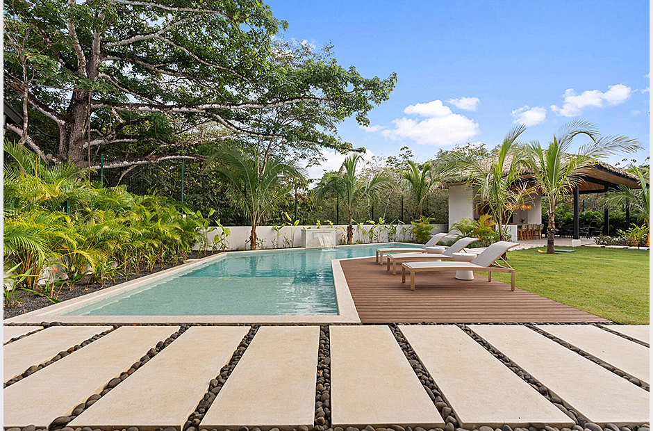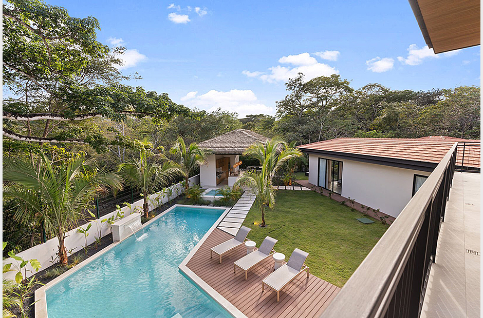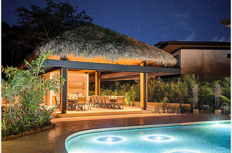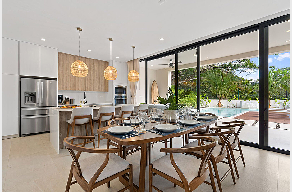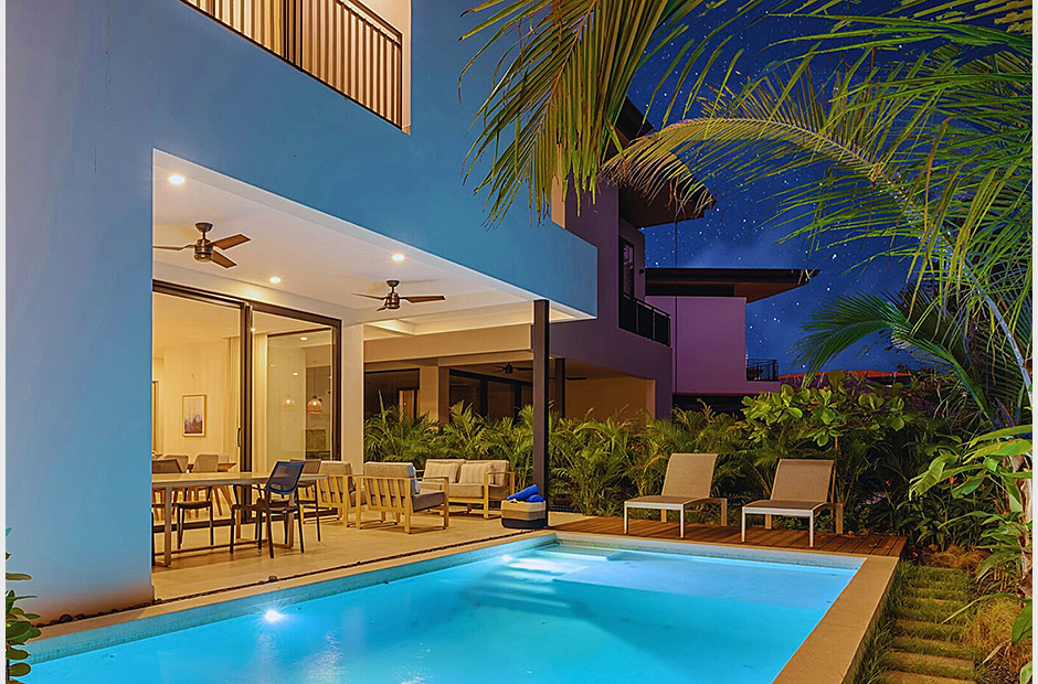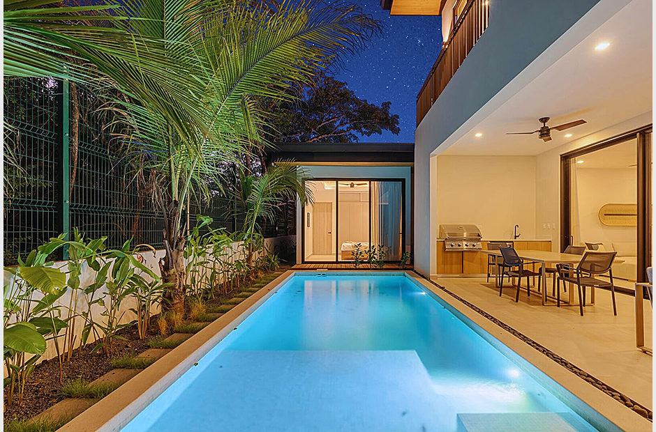 This brand-new modern villa in the all-new residential community of Hacienda Pinilla features 2 private villas, a heated jacuzzi, private pools, a rancho, and 12 private suites, accommodating up to 28 guests. You’ll enjoy family-friendly amenities in the beautifully maintained common area. Enjoy a 70-ft lap pool, kids’ shallow area, sundeck, open-air BBQ, and exclusive access to the fitness and yoga room.