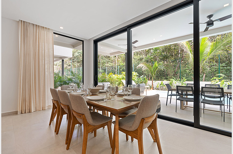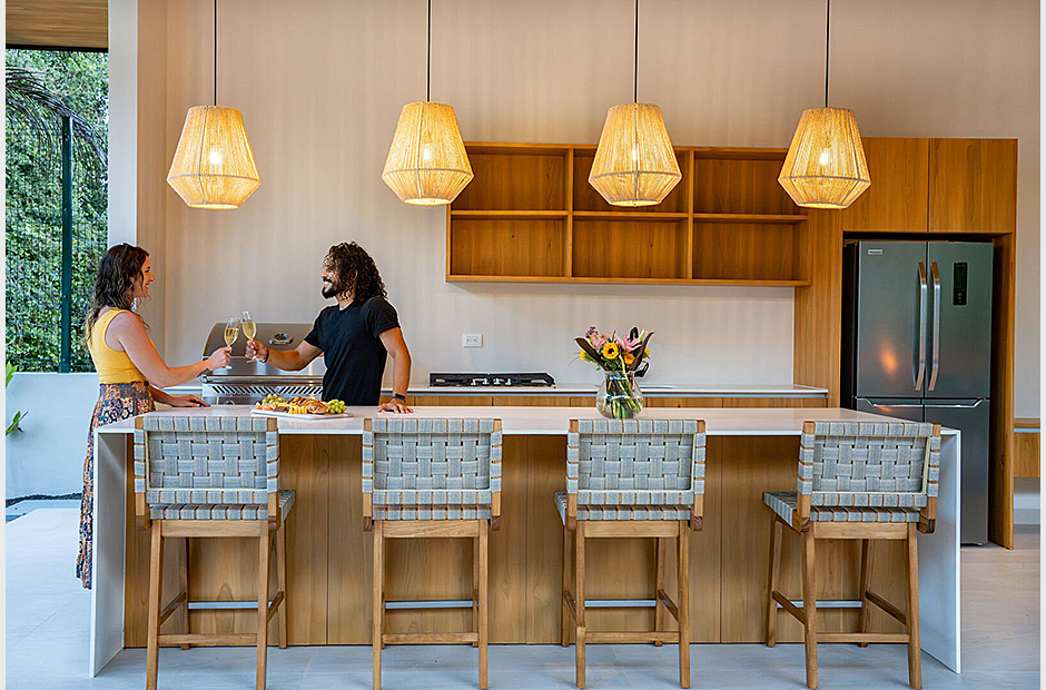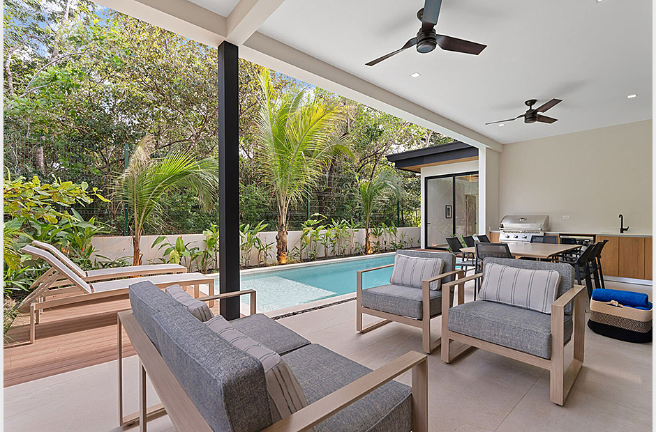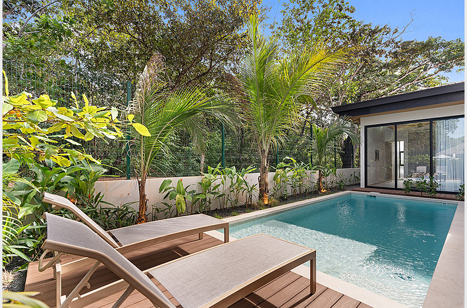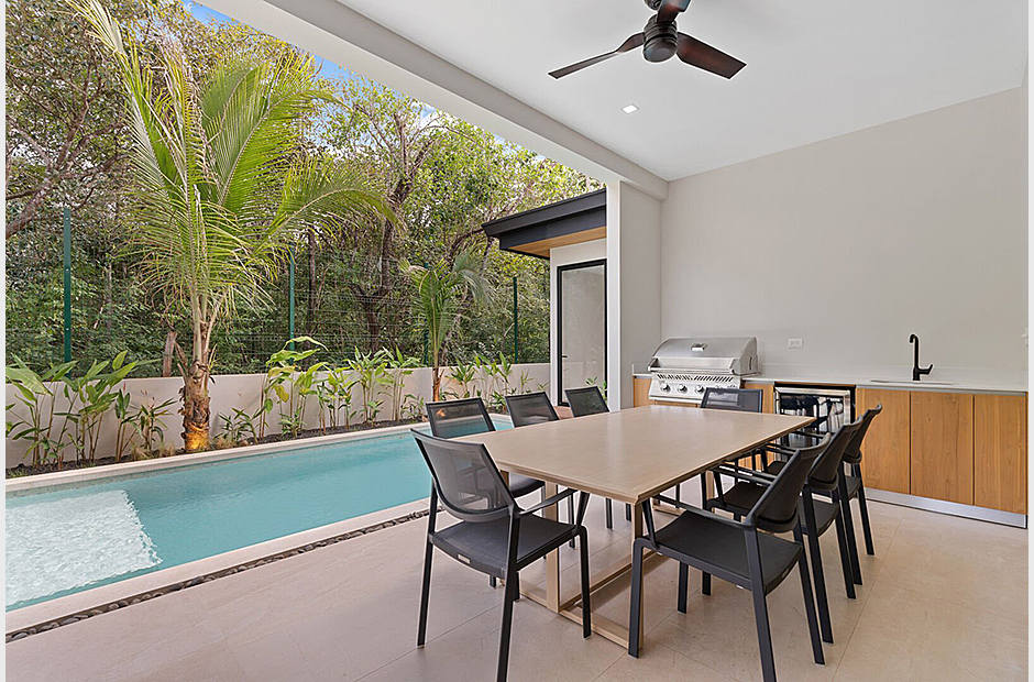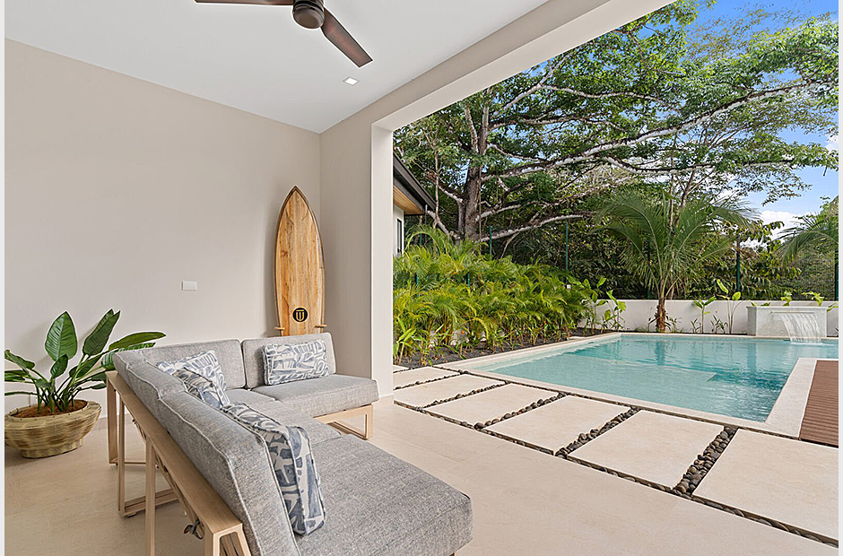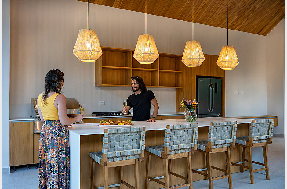 This brand-new modern villa in the all-new residential community of Hacienda Pinilla features 2 private villas, a heated jacuzzi, private pools, a rancho, and 12 private suites, accommodating up to 28 guests. You’ll enjoy family-friendly amenities in the beautifully maintained common area. Enjoy a 70-ft lap pool, kids’ shallow area, sundeck, open-air BBQ, and exclusive access to the fitness and yoga room.