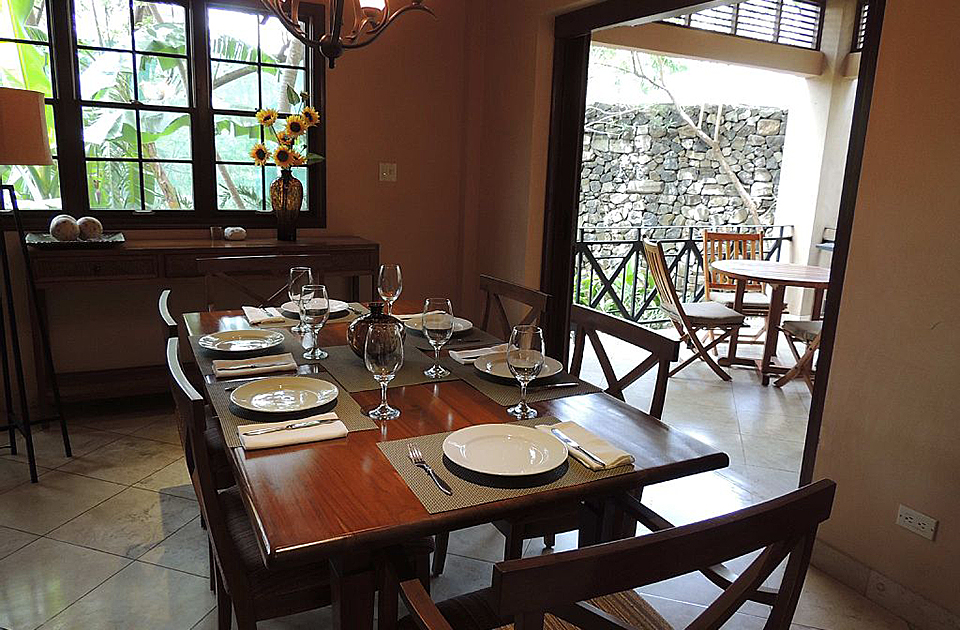 Every piece of wood is plantation grown teak. This includes the ceilings, cabinetry, doors, window surrounds and all of the custom built Costa Rican furniture. The kitchen appliances are high end Bosch stainless steel with kitchenware by Williams-Sonoma. Unusual in a condo, there is a separate laundry room with a full size Whirlpool Duet washer and dryer.
