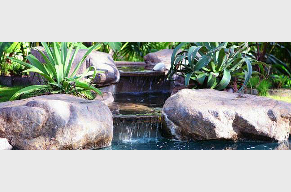 Walk through the great room and out into a private tropical paradise. Your own waterfall flows into the large private pool. Pathways take you into the backyard jungle complete with hammock for the ultimate in lounging comfort.