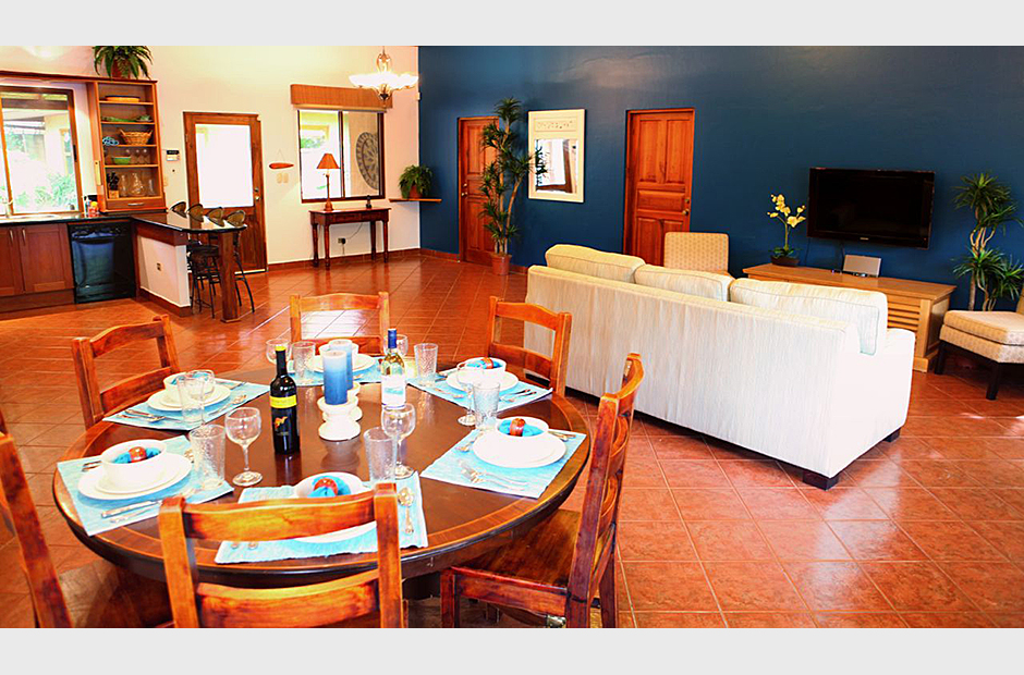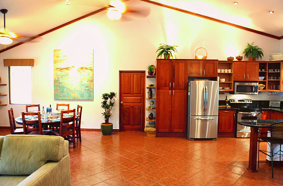 This villa provides the perfect blend of comfort and privacy. It is located just a four minute walk from beautiful Tamarindo Beach and close to shopping. The home is comfortable for up to nine guests and has four bedrooms and four full baths. The fourth bedroom is actually a separate casita with not only its own full bath but also a kitchenette. It is a perfect place to give any part of your group a little extra privacy.
