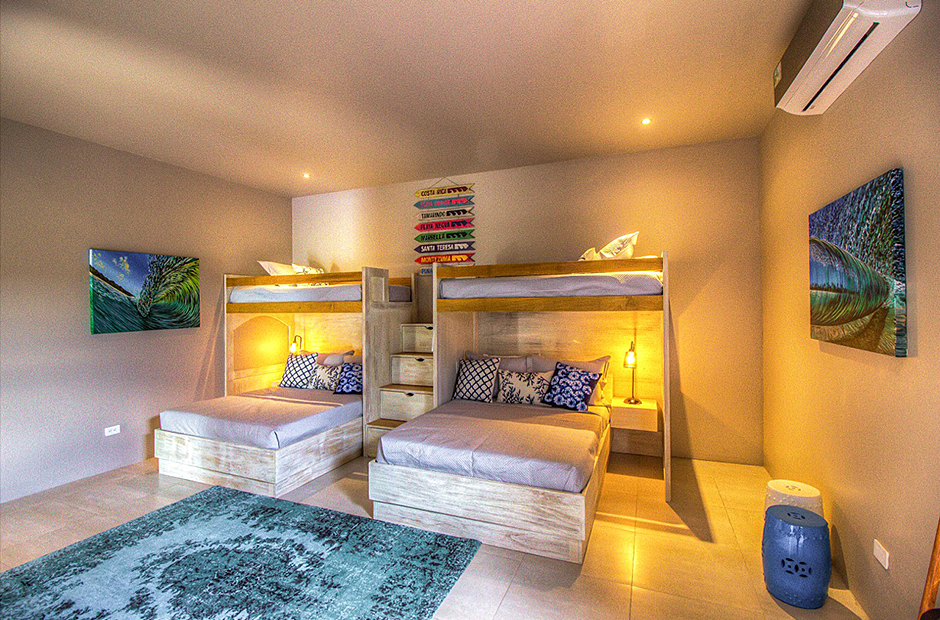 This beautiful four bedroom home is superbly decorated. This house was built for the tropical lifestyle and will not disappoint with its luxury outdoor seating and door systems that make the inside connect outside and become one with nature. The home boasts a beautiful pool for cooling off and sunbathing. The home sleeps up to 12 people utilizing a large room that sleeps 8 with several beds, perfect for kids and families. Take a look at the pictures to see how this works.