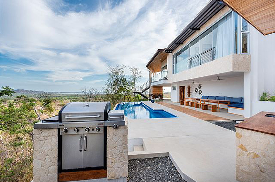 This villa is a secret vacation hideaway set on a mountainside overlooking Playa Grande and the vast expanse of Tamarindo Bay. This just-finished vacation rental home obeys the modern preference for elegance built around crisp lines and inviting simplicity. With three bedrooms in the main house and one stand-alone poolside apartment, Our villa is designed to accommodate up to 10 guests in the finest of tropical luxury.