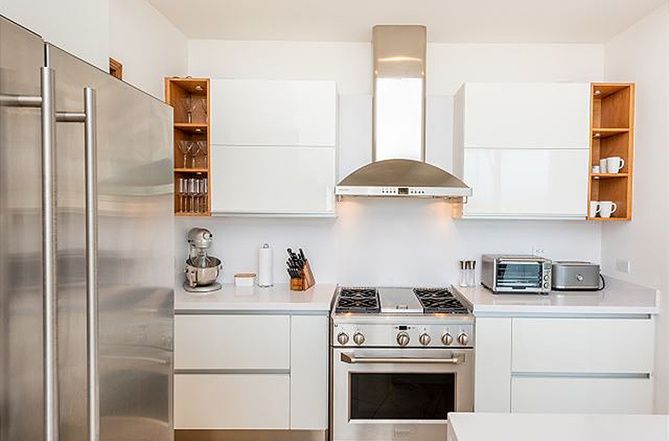 A poolside apartment offers an independent living space that is furnished with a queen sized bed and contains a complete kitchen of its own.