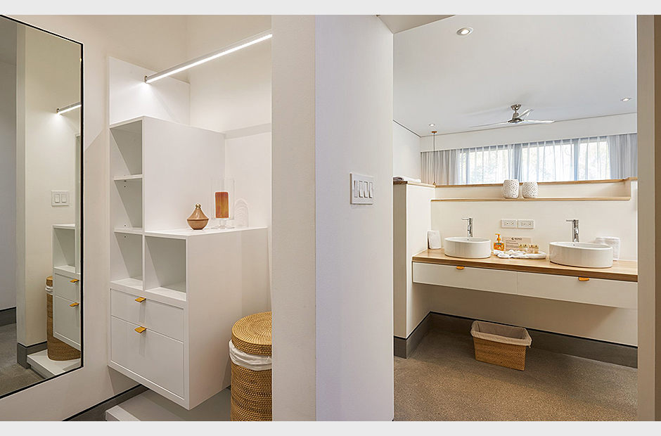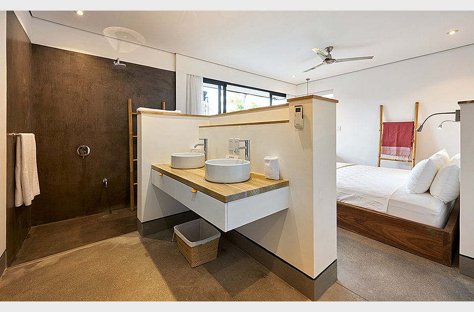 The villa features 3 master bedrooms with a king size bed each and swimming pool/garden views and 1 kids bedrooms with double bunk beds. The spacious living areas can be opened completely towards the swimming pool. The inside living area includes one big fully equipped kitchen and a bar seating at the island. The dining area includes a 10-foot long dining table that will comfortably sit 12 people. Enjoy our 60" flat screen TV in the main area.