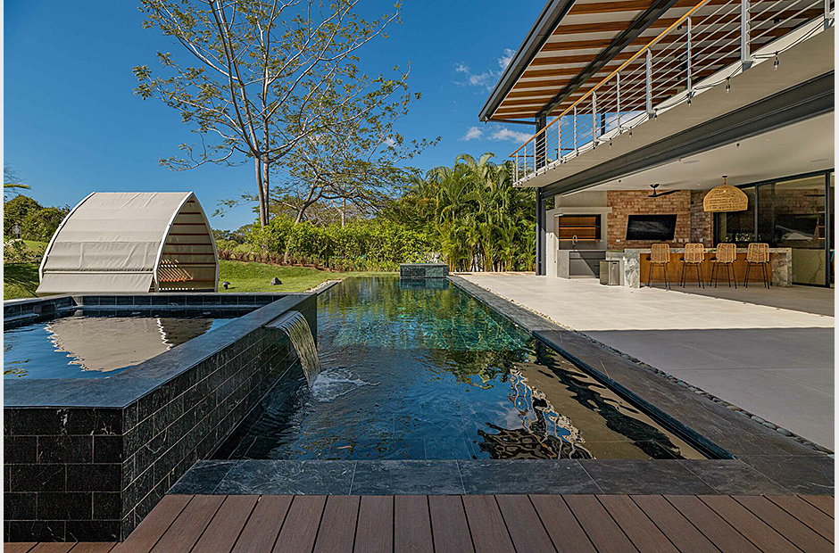 Just a 5-minute golf cart ride to the beach, this home offers a heated jacuzzi, private pool, sports equipment, and access to the nearby beach club, golf, and tennis.