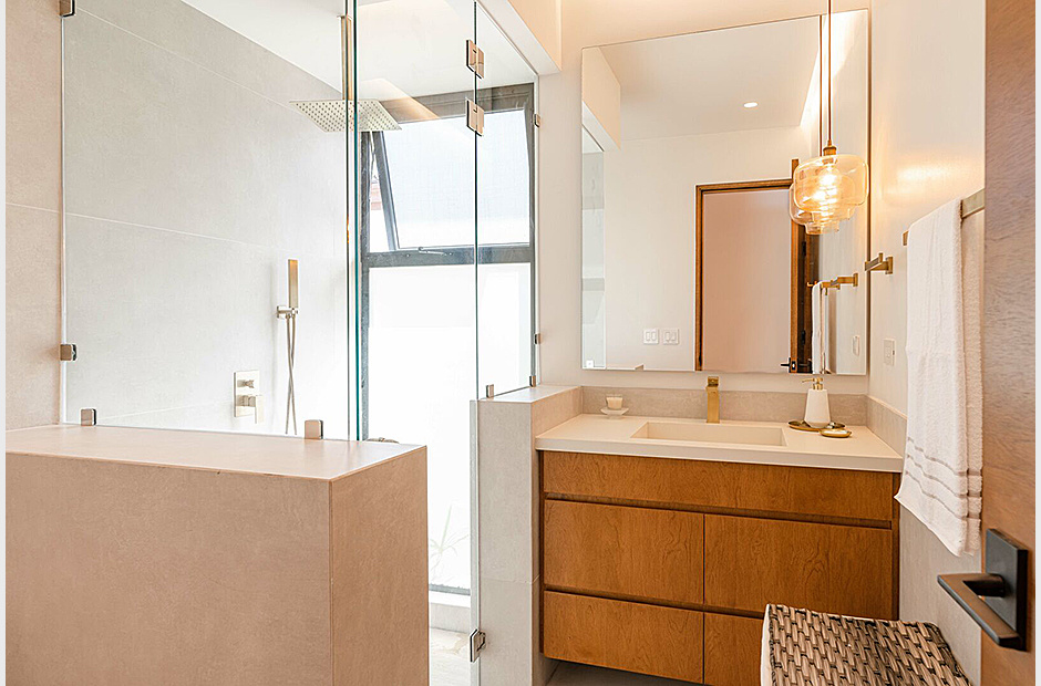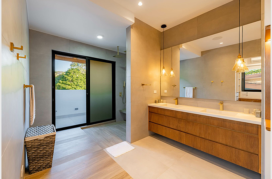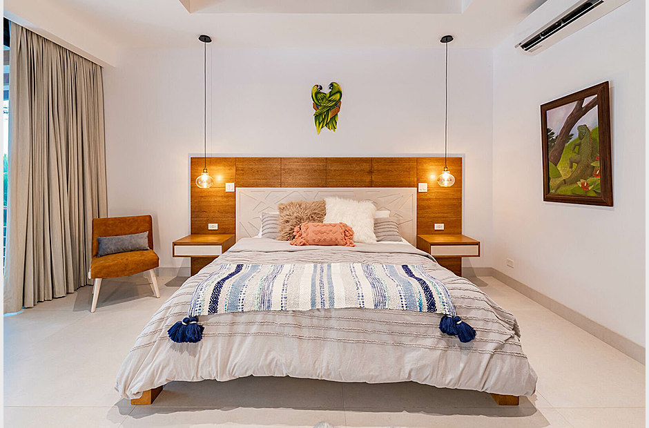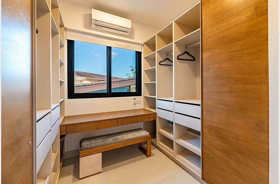 Master Bedroom 1: One King Bed and Bunk Bed with Ensuite Bathroom, AC, Ceiling Fan, Safe, Walking Closet, kitchenette/office.