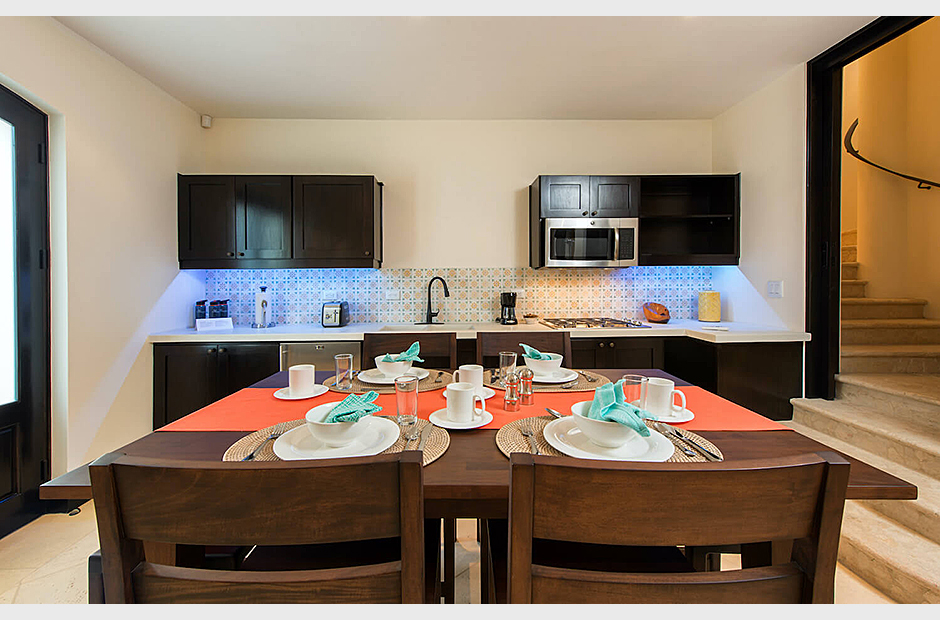 The home continues upwards, where two restful floors coated in gentle earth tones provide a respite from the adventures of the day. It culminates on the relaxing master bedroom floor which has its own king bed, spacious walk-in closet, and a private covered terrace to sit and experience the town as it moves quietly beneath you.
