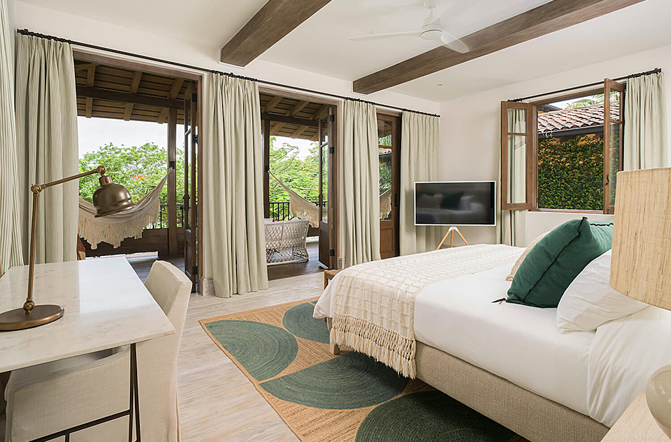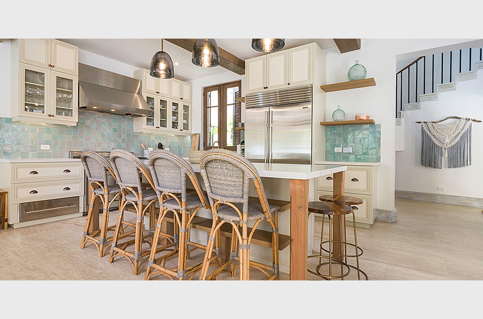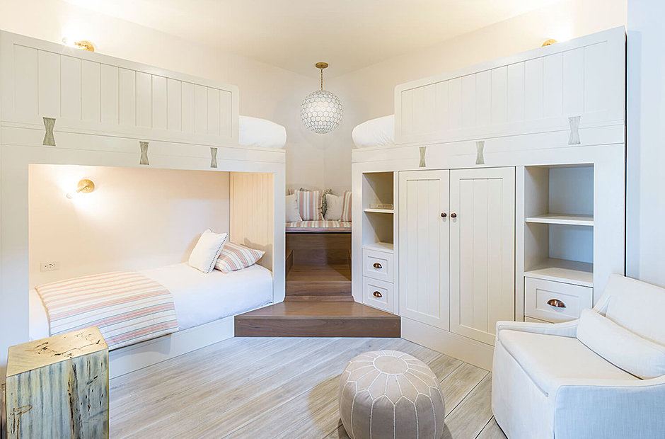 Four full bedrooms provide sleeping for up to 9 guests, one of which is a more whimsical stacked bunk bed room perfect for the kids to stay in together. The master bedroom boasts a covered terrace with Pacific Ocean views, a peaceful space to spend early mornings or evenings.