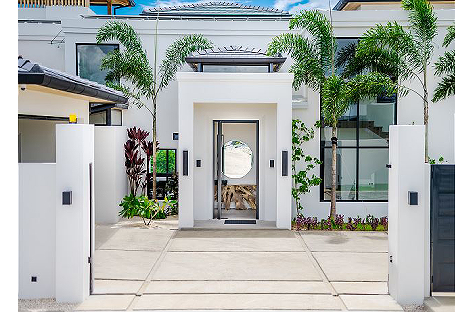This luxurious private villa just a few steps away from the beach offers a serene and unforgettable vacation experience combining modern finishes with integrated natural surroundings.