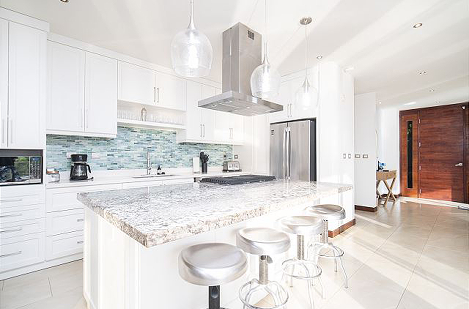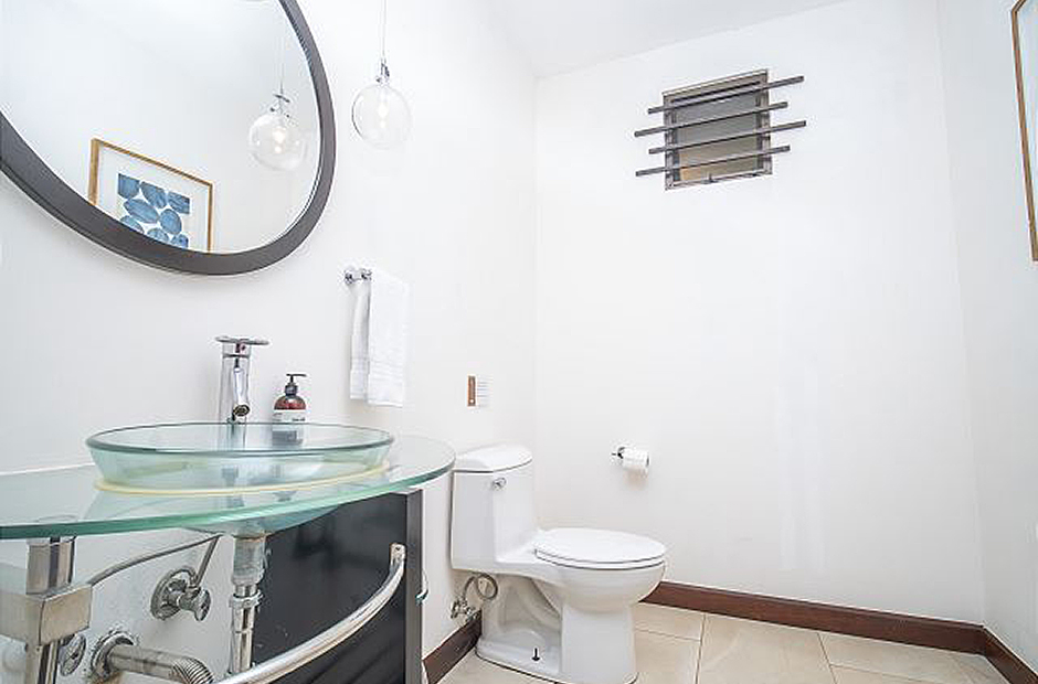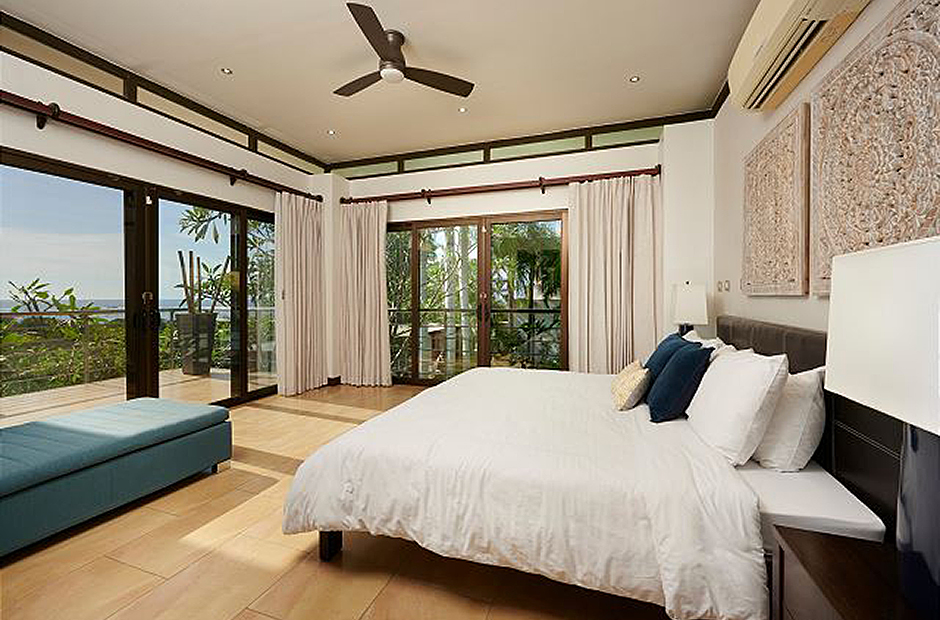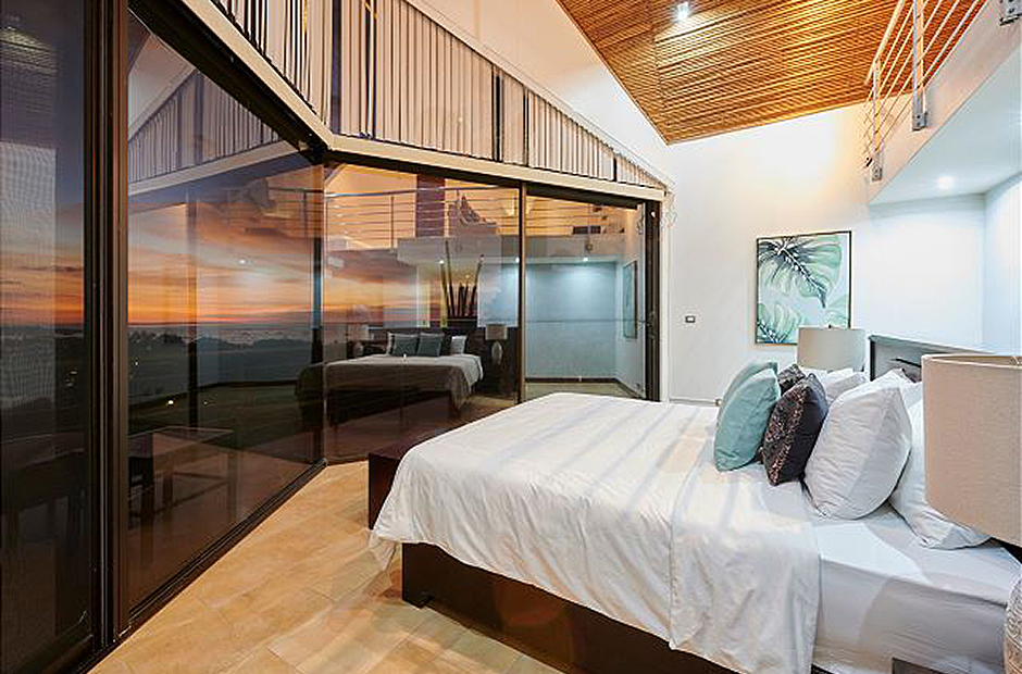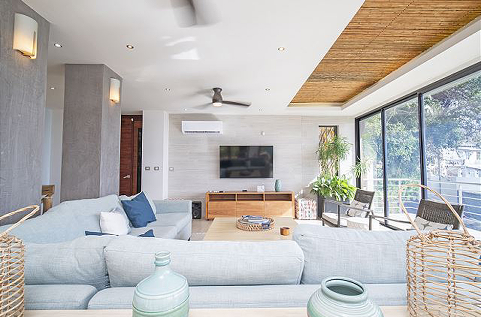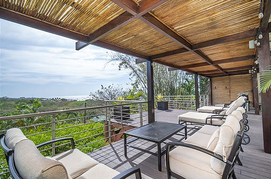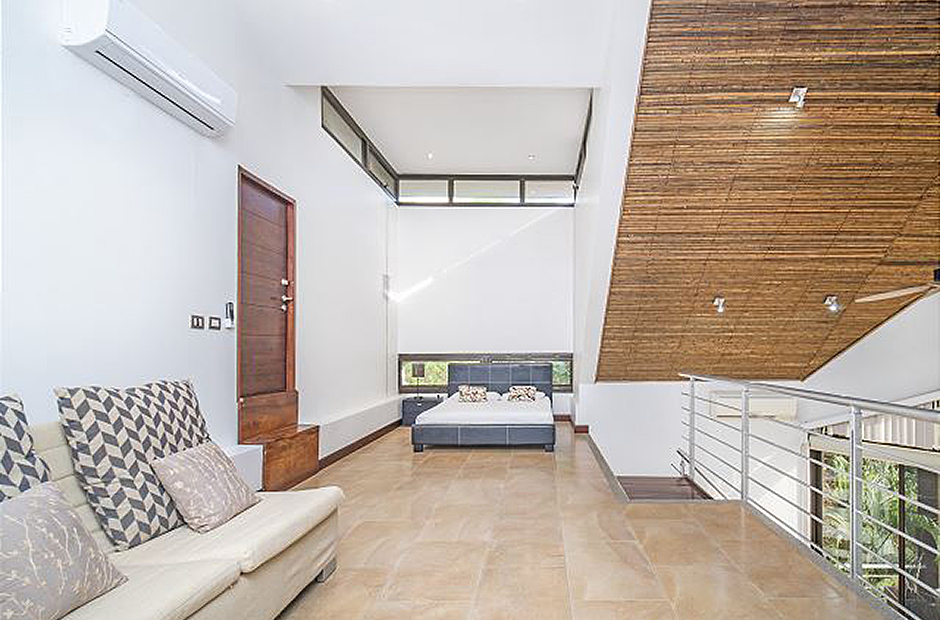 Feel the warm embrace of the tropical air as you pull back the floor-to-ceiling glass doors, inviting nature inside, and providing access to the beautiful pool and balcony. Swim, relax or take a delightful siesta out on the lovely terrace where you can choose from a hammock or plush outdoor couches. When lunchtime rolls around, light up the grill and cook up a mouthwatering BBQ amid the palm trees and garden. In the evening, prepare dinners in the modern kitchen, equipped with everything needed to create savory masterpieces. Gather around the beautiful, handcrafted, wooden ten-person table to reminisce upon the marvelous adventures had while partaking in your feast. At the end of a long, satisfying day, retreat to your very own master suite where you can unwind with a soothing warm bath, before sinking into a freshly made king-size bed. Fall asleep gazing out at the mesmerizing night sky through the extra large windows, then awaken every morning by taking in the fresh air from your private balcony. In addition to these wonderful features, an extra queen bed and living space can also be found in the loft of the master suite, perfect for families. Two other spacious king-size bedrooms, with lovely ocean-facing balconies, can be found next to the master suite, and a 4th king-size bedroom on the main level, with direct access to the tranquil garden and terrace. A 5th cozy bedroom provides a bunk bed with a queen bottom and single top mattress, great for children or children at heart. Daily cleaning is included so you can focus on relaxing.