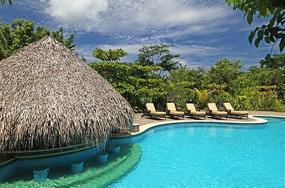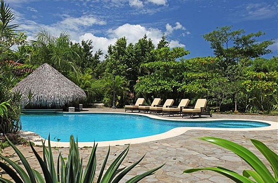 This elegant villa with its authentic Spanish Colonial design is situated on four secluded and private acres within the resort, surrounded by Hibiscus hedges, palm trees and citrus orchards. Its 45 ft. ceilings, courtyard fountains and 3 stair cases create a lush tropical vacation rental paradise. Its freeform pool is second to none and boasts of being the largest private pool in Guanacasta featuring waterfalls, jacuzzi and swim-up bar.